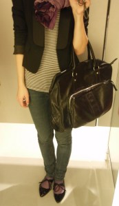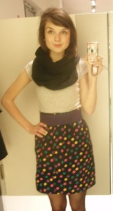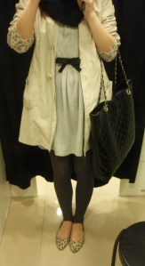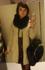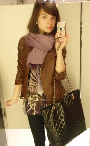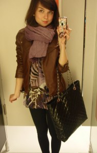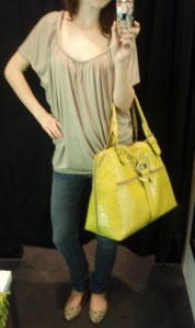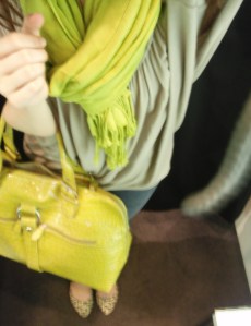 Hľa (tak toto slovo som ešte asi v živote nepoužila) môj včerajší obleček. Mala som chuť na niečo farebné a nakoniec to vyhrala taáto krikľavozelená taška spolu so šatkou. Vo voľnejšom tope mi bolo príjemne a pri jazde na bicykli efektne vial =) K tomu leopardie balerínky, ktoré som si veľmi obľúbila a je to !