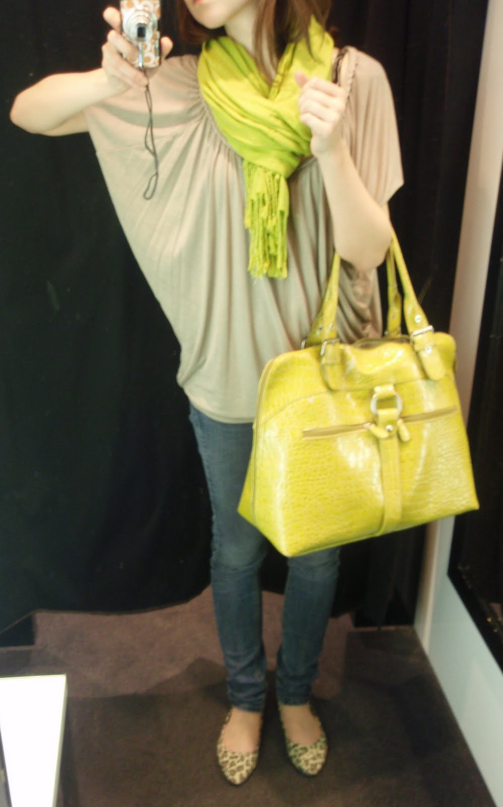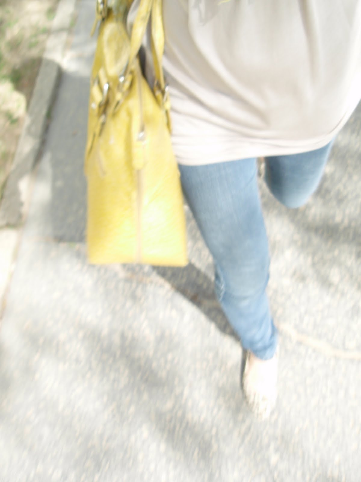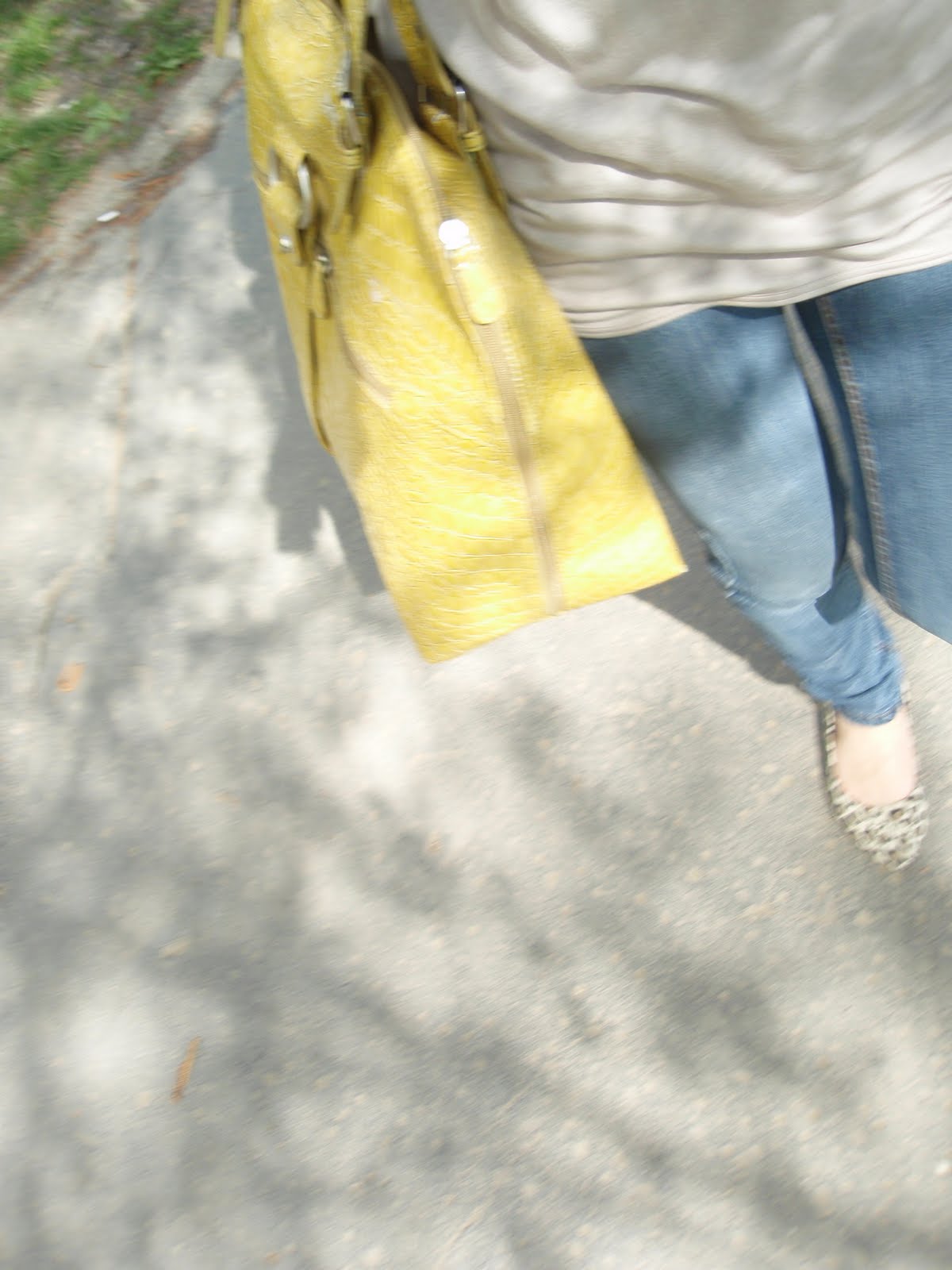 Hľa (tak toto slovo som ešte asi v živote nepoužila) môj včerajší obleček. Mala som chuť na niečo farebné a nakoniec to vyhrala taáto krikľavozelená taška spolu so šatkou. Vo voľnejšom tope mi bolo príjemne a pri jazde na bicykli efektne vial =) K tomu leopardie balerínky, ktoré som si veľmi obľúbila a je to !