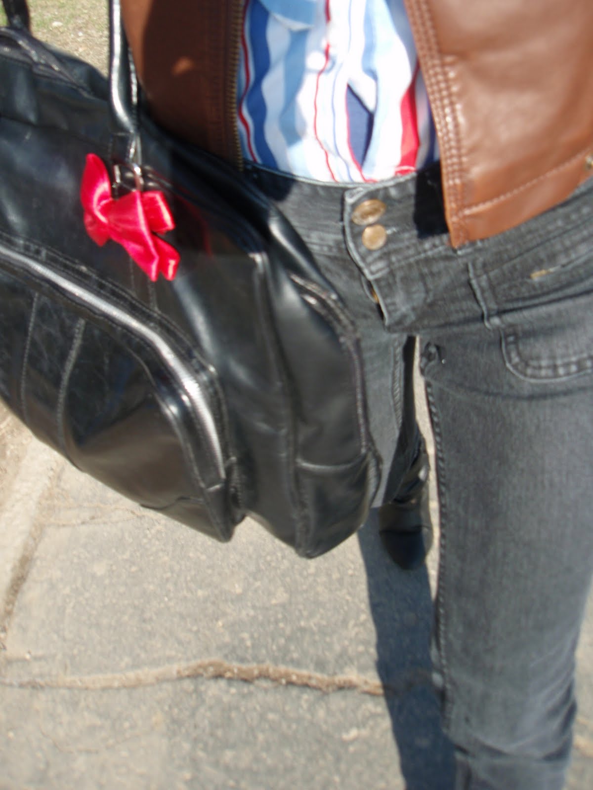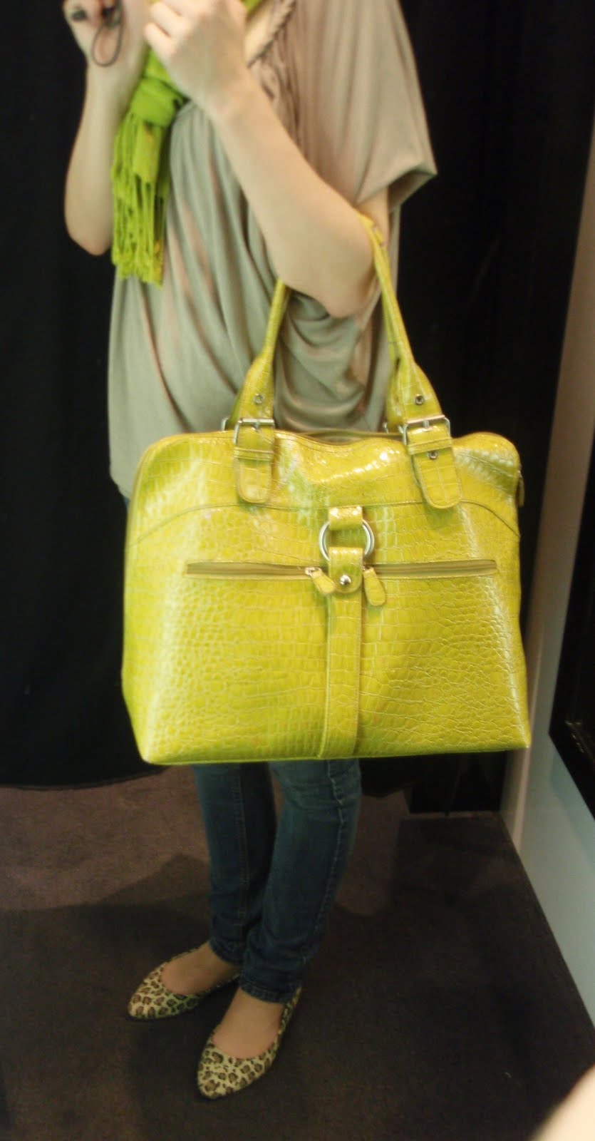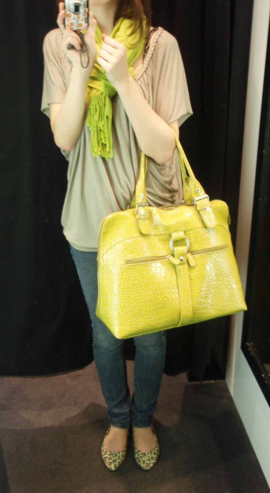 Hľa (tak toto slovo som ešte asi v živote nepoužila) môj včerajší obleček. Mala som chuť na niečo farebné a nakoniec to vyhrala taáto krikľavozelená taška spolu so šatkou. Vo voľnejšom tope mi bolo príjemne a pri jazde na bicykli efektne vial =) K tomu leopardie balerínky, ktoré som si veľmi obľúbila a je to !