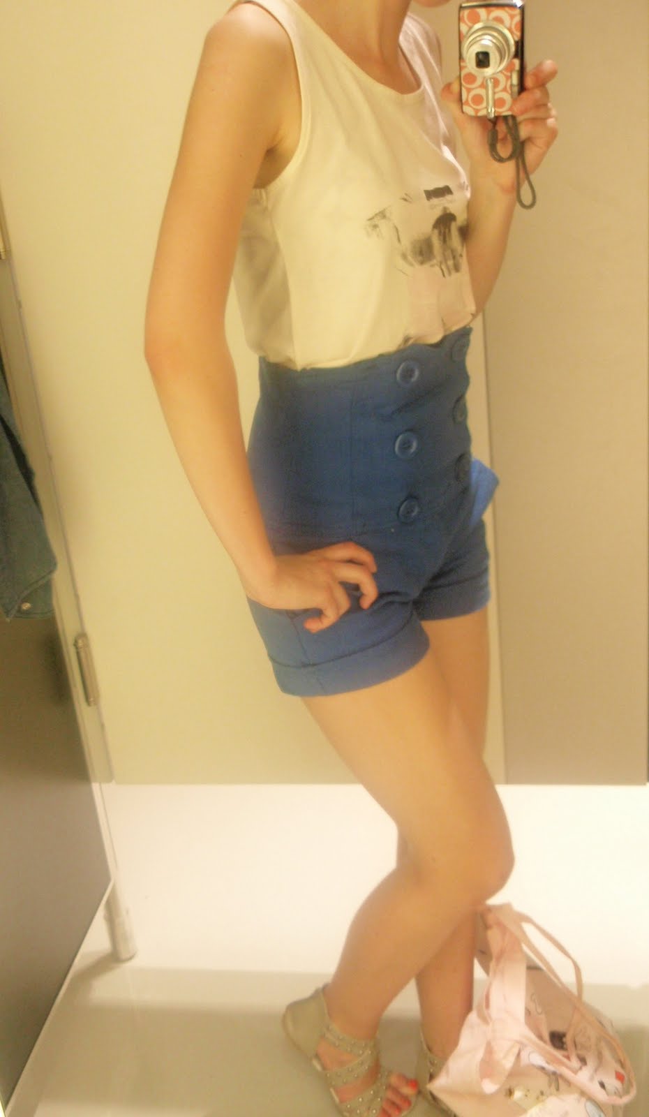 Stále iba zahováram, tak prejdime konečne k veci! Dnes som po roku vytiahla moje krásne námornícke šortky privezené minulý rok z Francúzska. Keď som ich objavila v jednom zapadnutom obchodíku za cenu niečo okolo 2,5 eura bola som nadšená. A nadšená som dodnes…musím sa priznať že aj ohlasy okolia boli viac než pozitívne, čo ma naozaj veľmi teší.