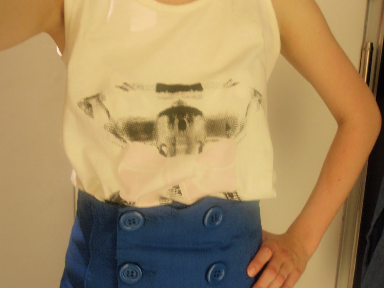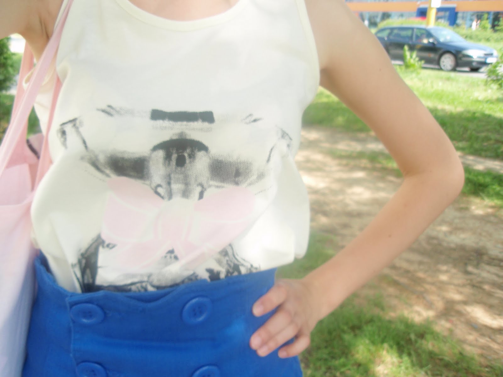 No a čo som si do takéhoto krásne slnečného dňa obliekla ? Hlavným bodom je mať toho na sebe čo najmenej, pretože naša krásna škola sa v takéto ročné obdobie mení na dosť výkonnú saunu…takže sa všetci odhaľujeme =) Áno, aj ja dávam na obdiv moje ´úžasne´ biele nohy…no a čo ? Veď nemusíme byť všetci vysolárkovaní. To ja si radšej počkám na opekanie sa na pláži (ktorej sa mimochodom už teraz neviem dočkať) Rátam dni do konca školy…už len prežiť tento a následujúci týždeň (ktoré sú preplnené písomkami…veď všetci chcú na konci roka doháňať a opravovať) a potom nám bude hej ! =)