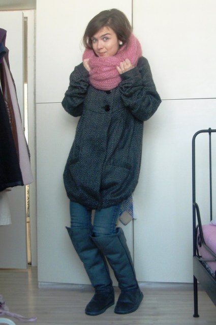 4. překrásný kabát, opravdu moc a sladěný s botama a šálou (nebo tím-nečím-okolo-krku :D)no muá :D :) jestli se múžu zeptat odkud je tento kabát :) děkuji moc