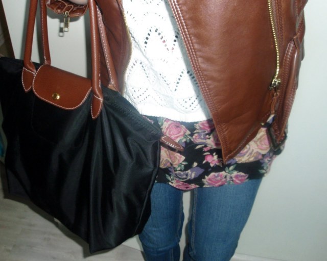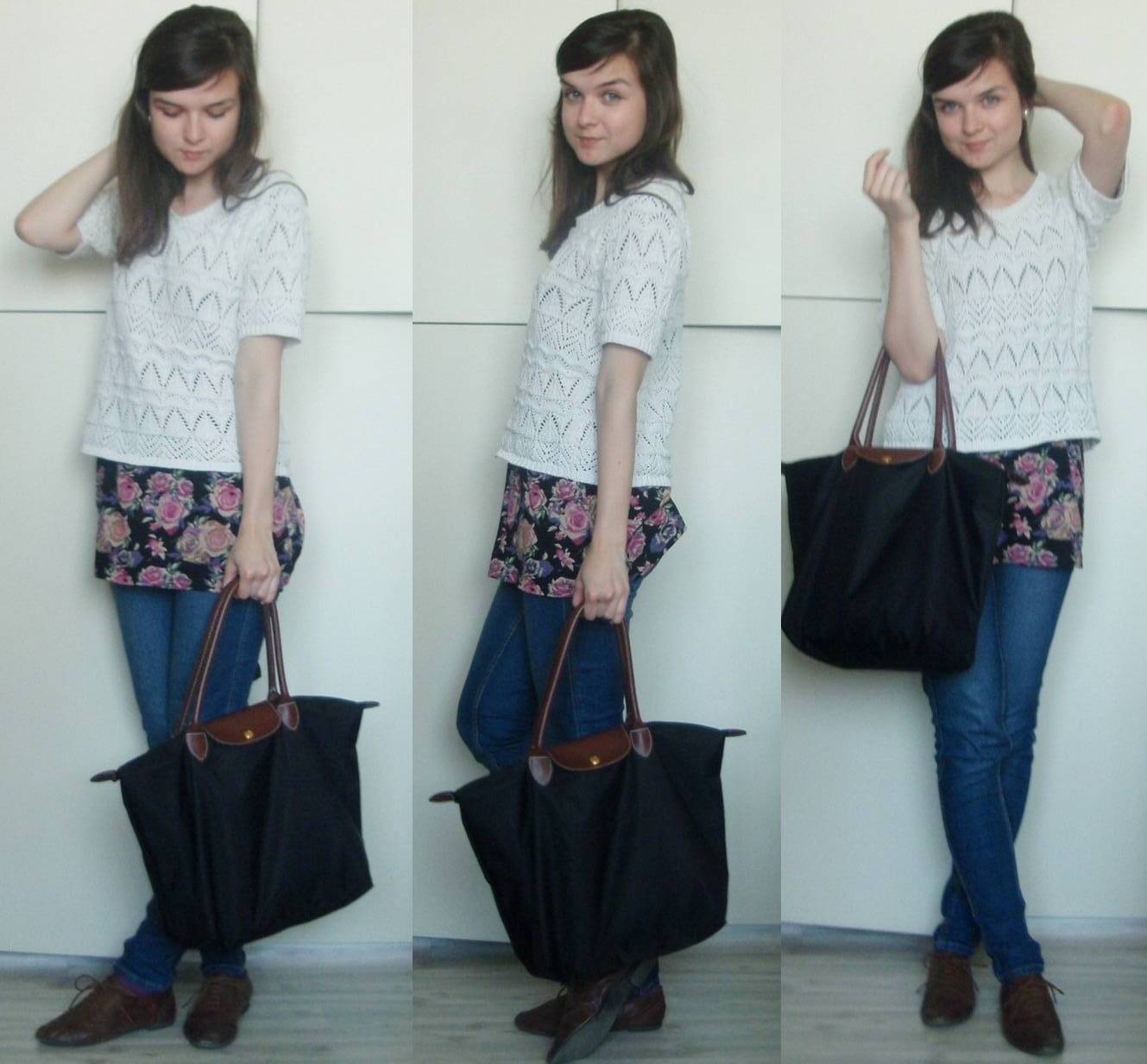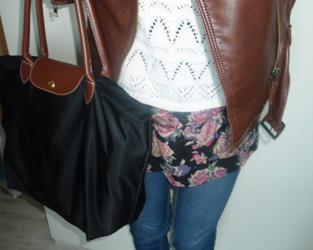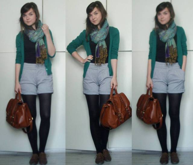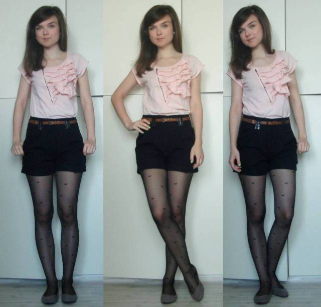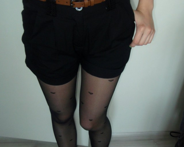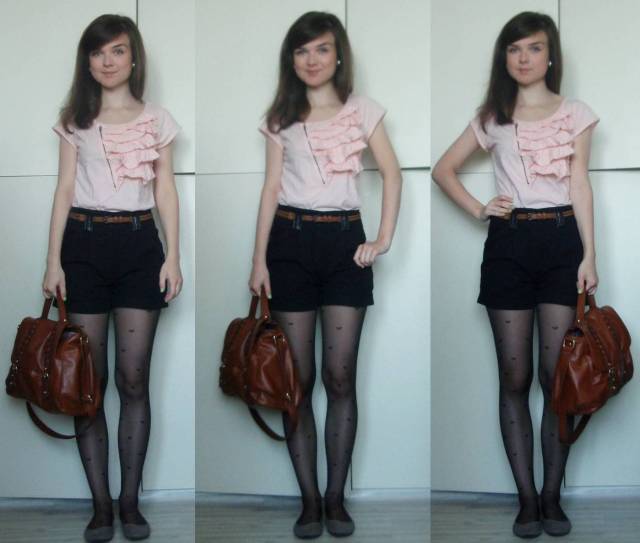 tričko – Reserved/šortky – New Yorker/taška – H&M/opasok – secondhand/silonky – Gate/balerínky – F&F
