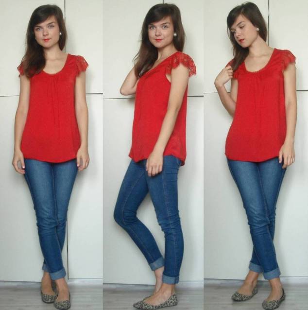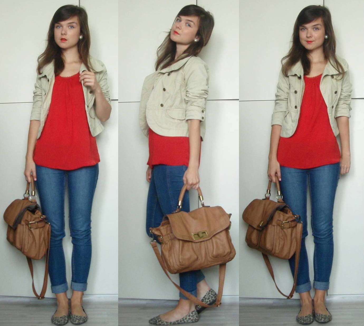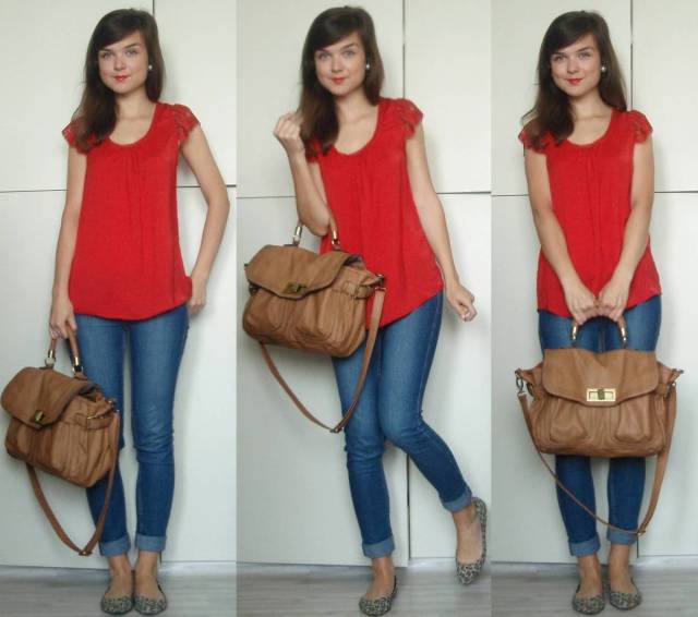 Ale inak je to dnes celé úplne jednoduché. Nahodíte rifle (radím vyhrnúť!), top, balerínky a kabelku a je hotovo! Hlavným prvkom sú predsa farby. Teda farba! Žiarivo červená! To je môjho srdca šampión!