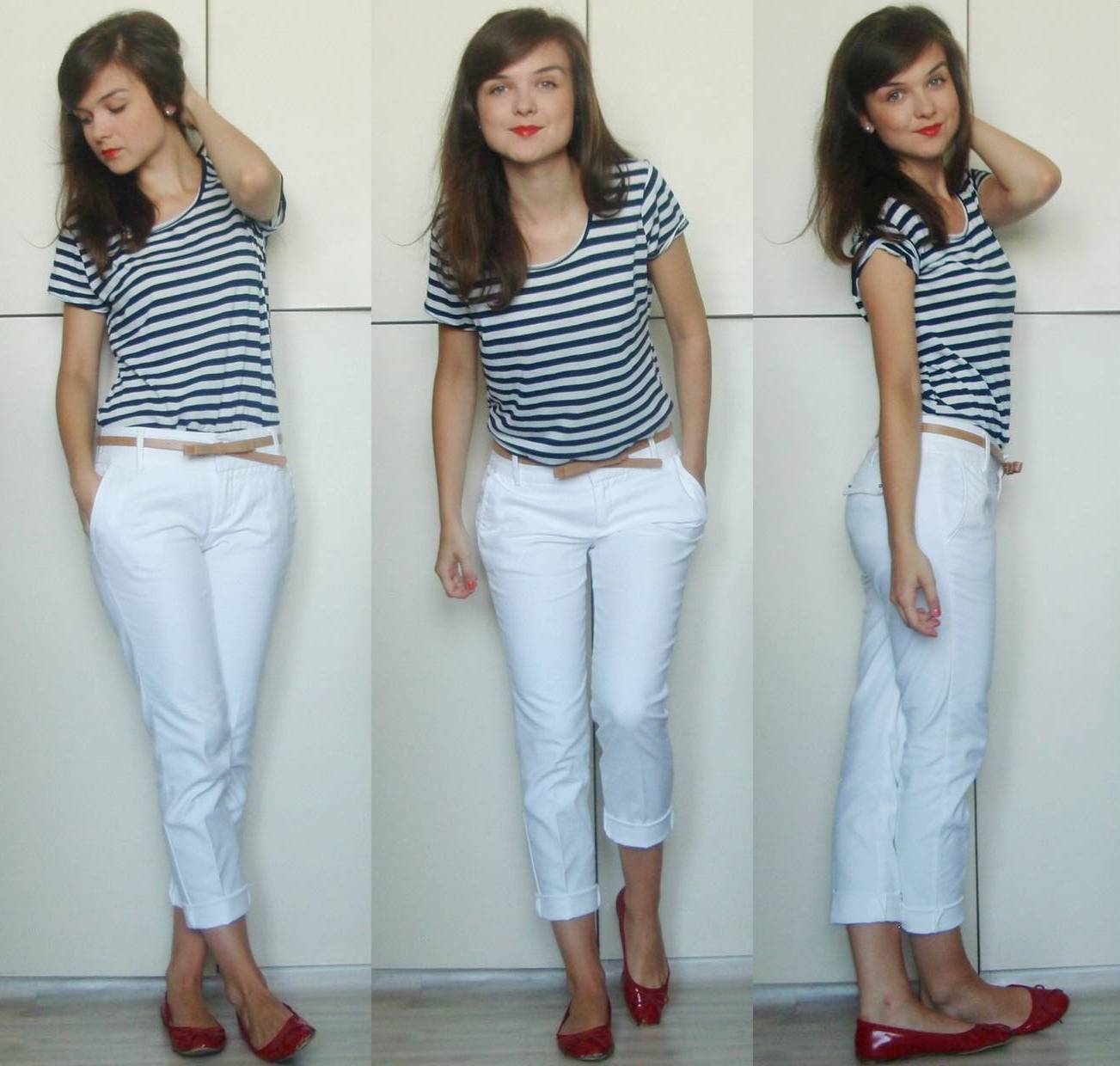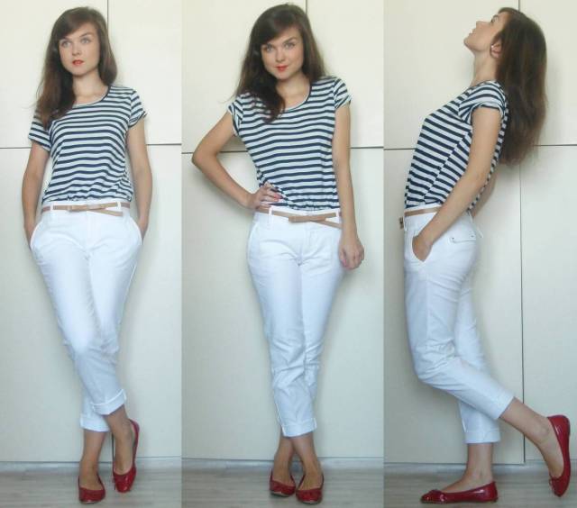 Všímate tie nohavice? Jeden z posledných prírastkov do šatníka. Sú zo Zary a podľa mňa sú absolútne nadčasové. Skvelo vypracované s premakanými detailami (tie vrecká vzadu sú riešené úplne perfektne!) a dajú sa nosiť buď vyhrnuté, alebo normálne spustené kedy siahajú tak na úroveň členka. Majú puky a to ma baví. A sú biele. Ako keby sa pre tento námornícky štýl narodili!