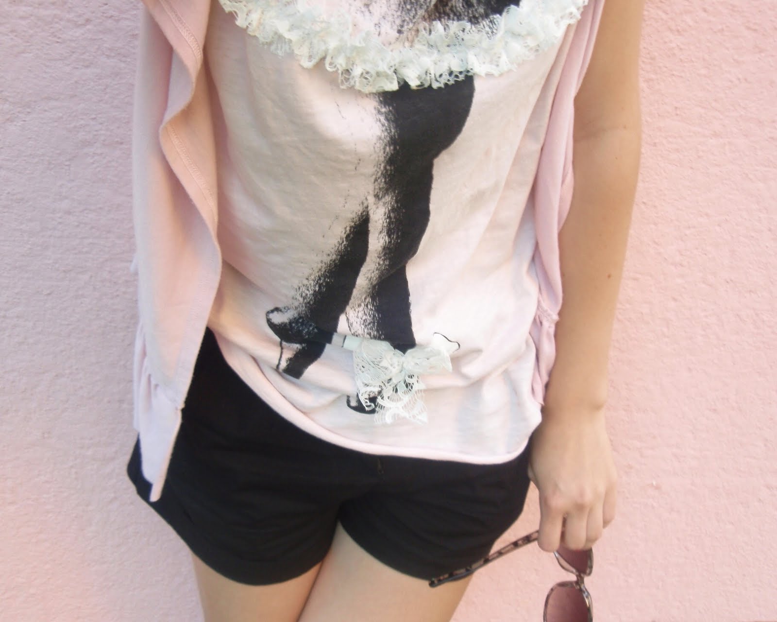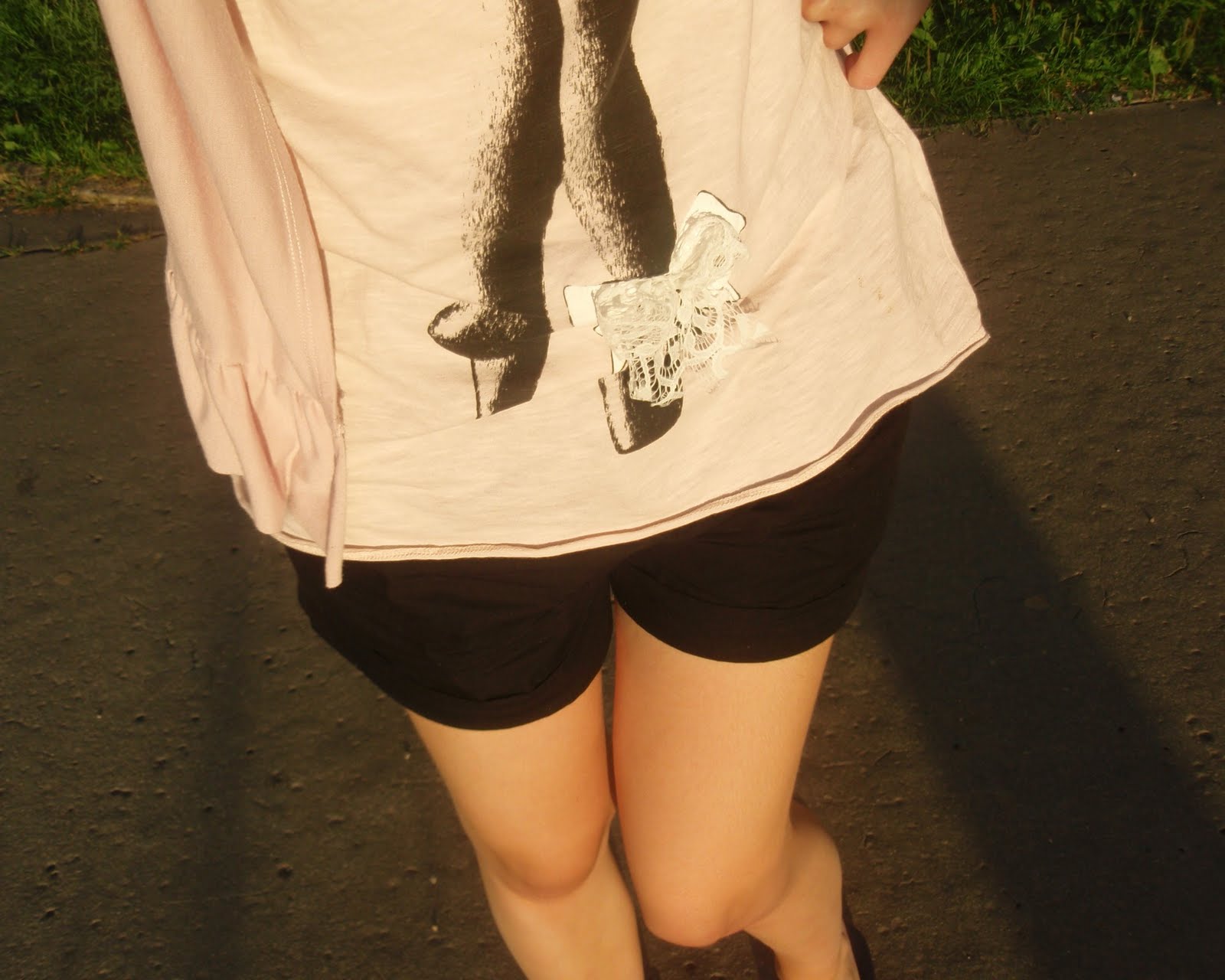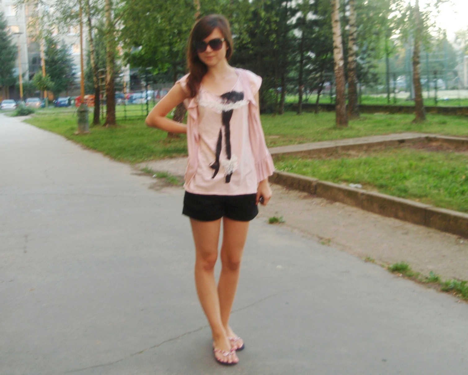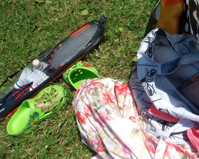 Keď som ráno vyrážala do mesta, nevyzeralo to na úplne horúci deň. Teplomer ukazoval asi osemnástku. Tak preto to sako a aj šatka. No slnko svietilo. A že svietilo poriadne. Veď za chvíľu bolo 28 stupňov a mne poriadne horúco. Takže na obed, keď som dobehla domov bola misia jasná: nohavice som vymenila za kraťasy (aj môžete hádať ktoré..jasné, že tie biele námornícke ;), na nohy som nazula žabky (áno..tie mašličkové) a mohlo sa pokračovať. Ten bedminton nás toto leto naozaj baví!