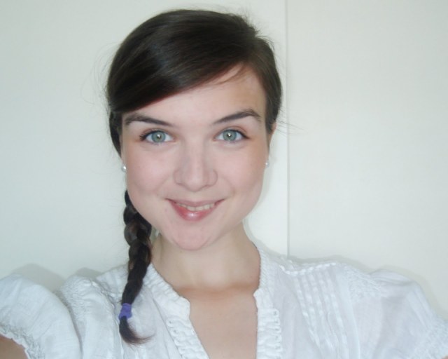 White on my pants, blue on my T-shirt and red on my lips (but also on my flats).