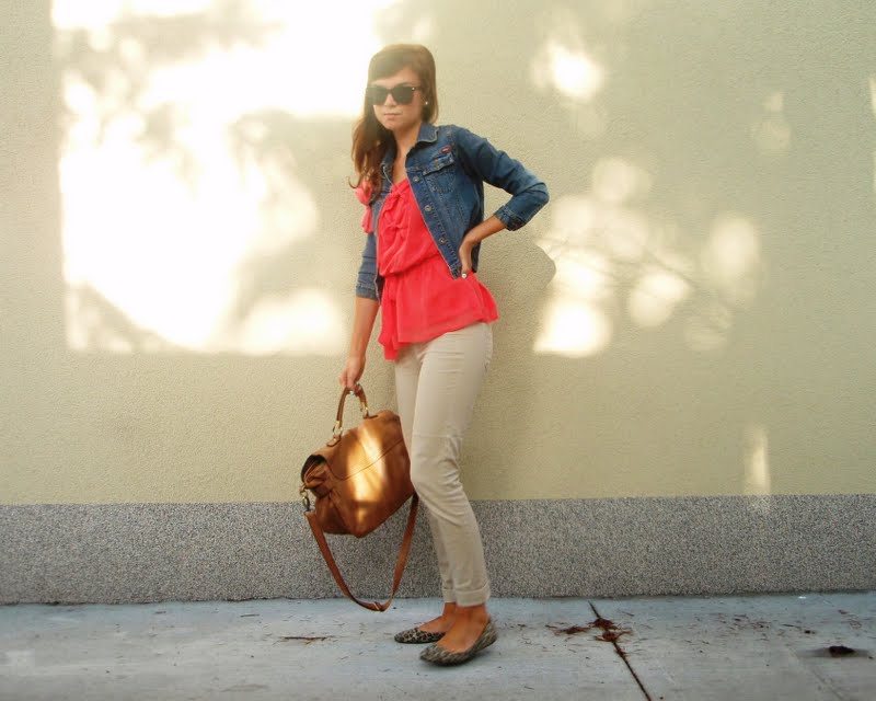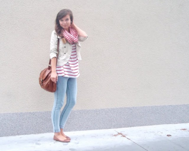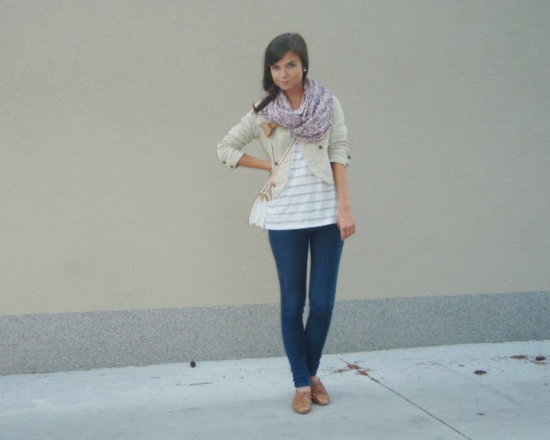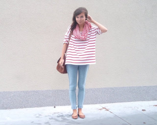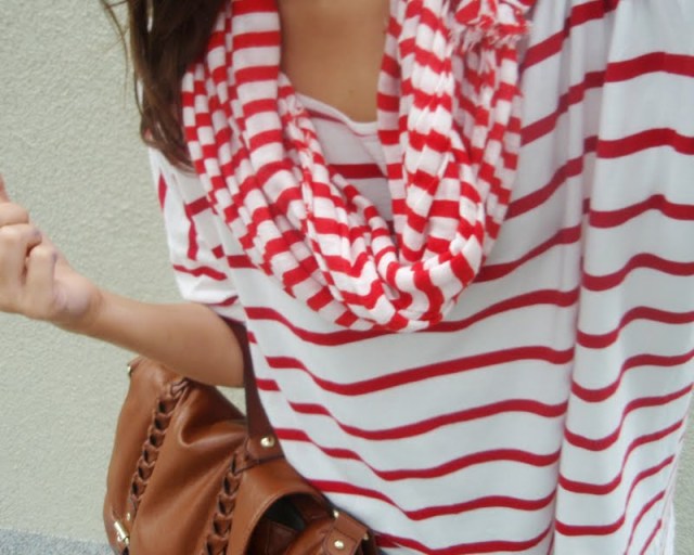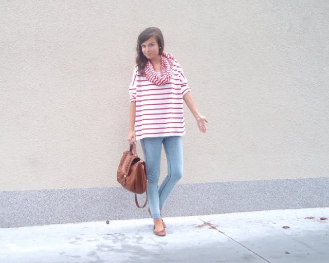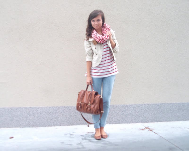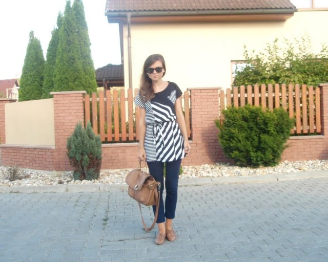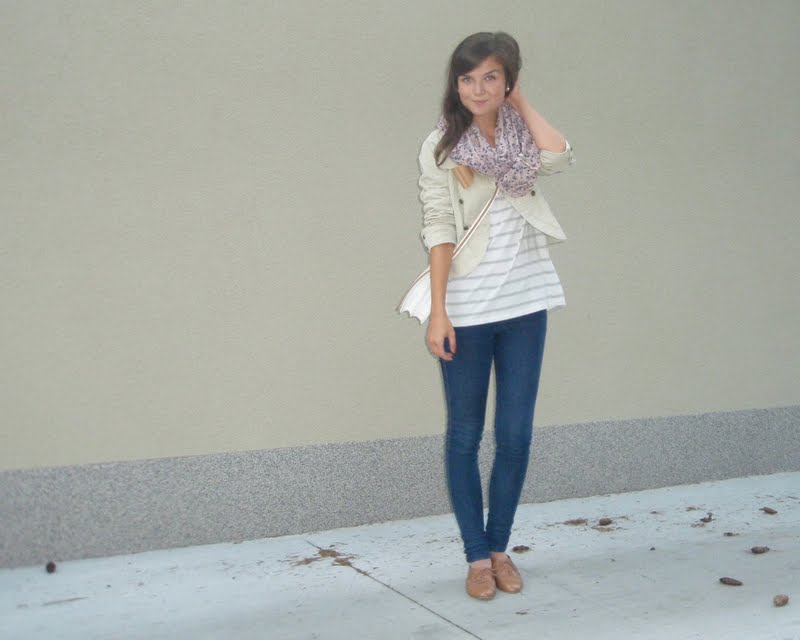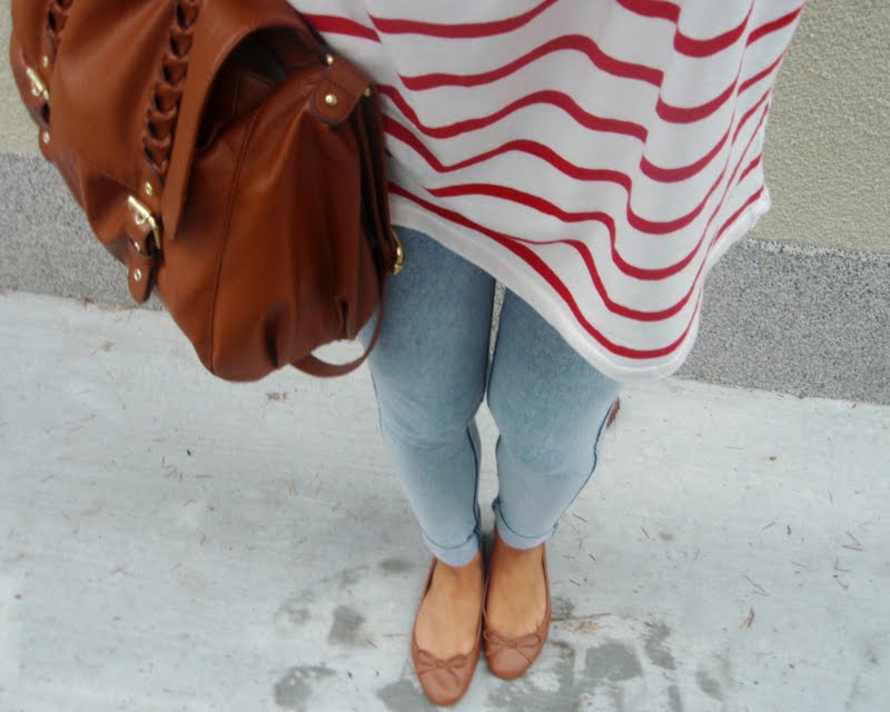Kruhový šál pretože tie kruhové sú úplne najlepšie. Už to bude tretí rok čo ich nosím a neviem si ich vynachváliť. Tak prečo nerozšíriť zásoby. Tá maličká kabelka mi pripomína tašku na foťák. Tak už si iba zadovážim ten foťák a budem úplne spokojná. Nejaký top s čipkovaným chrbtom som chcela už dávno. A keď som narazila na tento. Pruhovaný. Krátky. A v absolútnej zľave za 1e. No nekúp to! Vyzerá skvele s jednoduchým tielkom pod ním napríklad. Bagandže boli tiež v akcii. V Tescu. A keďže mám už jedny podobné. Svetloružové. Hnedým som jednoducho neodolala (keďže hnedá je v poslednom čase môj favorit). Obria kabelka bola láskou na prvý pohľad. Na dovolenke v Taliansku. A (ako asi všetky moje kabelky) má tiež svoju story, ktorá nakoniec skončila happy-endom. Takže sa z nej naozaj teším. Je priestranná, úplne jednoduchá, diplomatická (ako ju ja nazývam) a celkom dosť dokonalá podľa mňa. A nakoniec košeľa. Tú mám síce už asi tri roky, ale do tejto hnedej nálady sa mi úplne hodila. A taktiež nesmieme zabúdať, že rôzne variácie na límce a golieriky ma začínajú baviť čoraz viac.