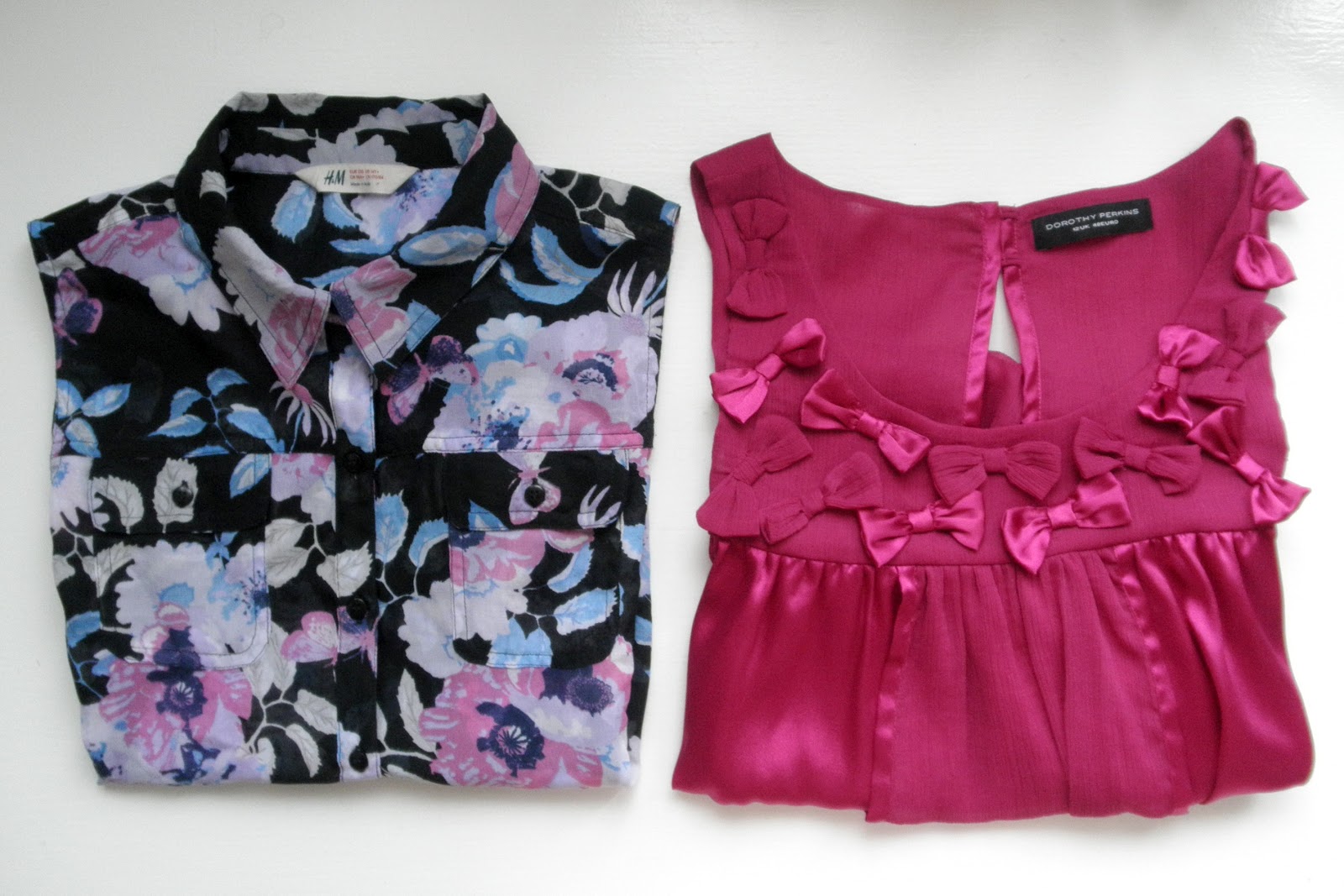 Kvetovaná košeľa z detského háemka uchmatnutá vo výpredaji za 3e bola jasná voľba. A ten (prekvapivo zase raz) mašličkový topík je ďalší z rozkošníckych kúskov, nemyslíte? Tiež zo sekáča.