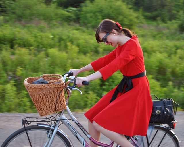 Nikdy som si samu seba nepredstavovala v takýchto šatách. Jednoducho niečo čierne a siahajúce až po zem vôbec nezapadá do môjho štýlu. No po rozhovore s kamarátkou o tom, ako zháňa dlhú sukňu a stále nevie nájsť tú pravú, som si spomenula na tieto šaty. Kúpené pred rokom v sekáči za smiešnych 50 centov (nové s visačkou!) a odvtedy pochované v hlbinách skrine. Úplne som na ne zabudla a myslela som si, že keď ich nájdem, vôbec sa mi nebudú páčiť. No opak bol pravdou a keď som si ich obliekla spolu s tyrkysovým opaskom a sandálkami, cítila som sa až prekvapivo dobre. Veľmi sa mi na nich páči ten priesvitný detail na chrbte a tiež zisťujem, že dlhá sukňa je asi najúčinnejšia ochrana pred komármi. Viem, že by to chcelo nejakú menšiu kabelku (mmm…také tyrkysové psaníčko by vôbec nebolo zlé), no boli sme sa kúpať, takže pod šatami mám plavky a v kabelke uterák, knihu a opaľovací krém. No a hádajte aký mám vzťah k dlhým šatám/sukniam teraz? Túžim už pár dní po nejakej takejto!