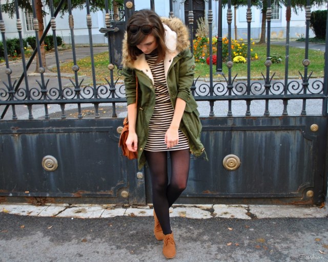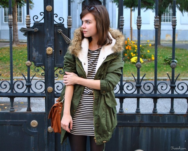 pruhované šaty s perlovým límčekom, to som vraj celá ja. Môže byť!