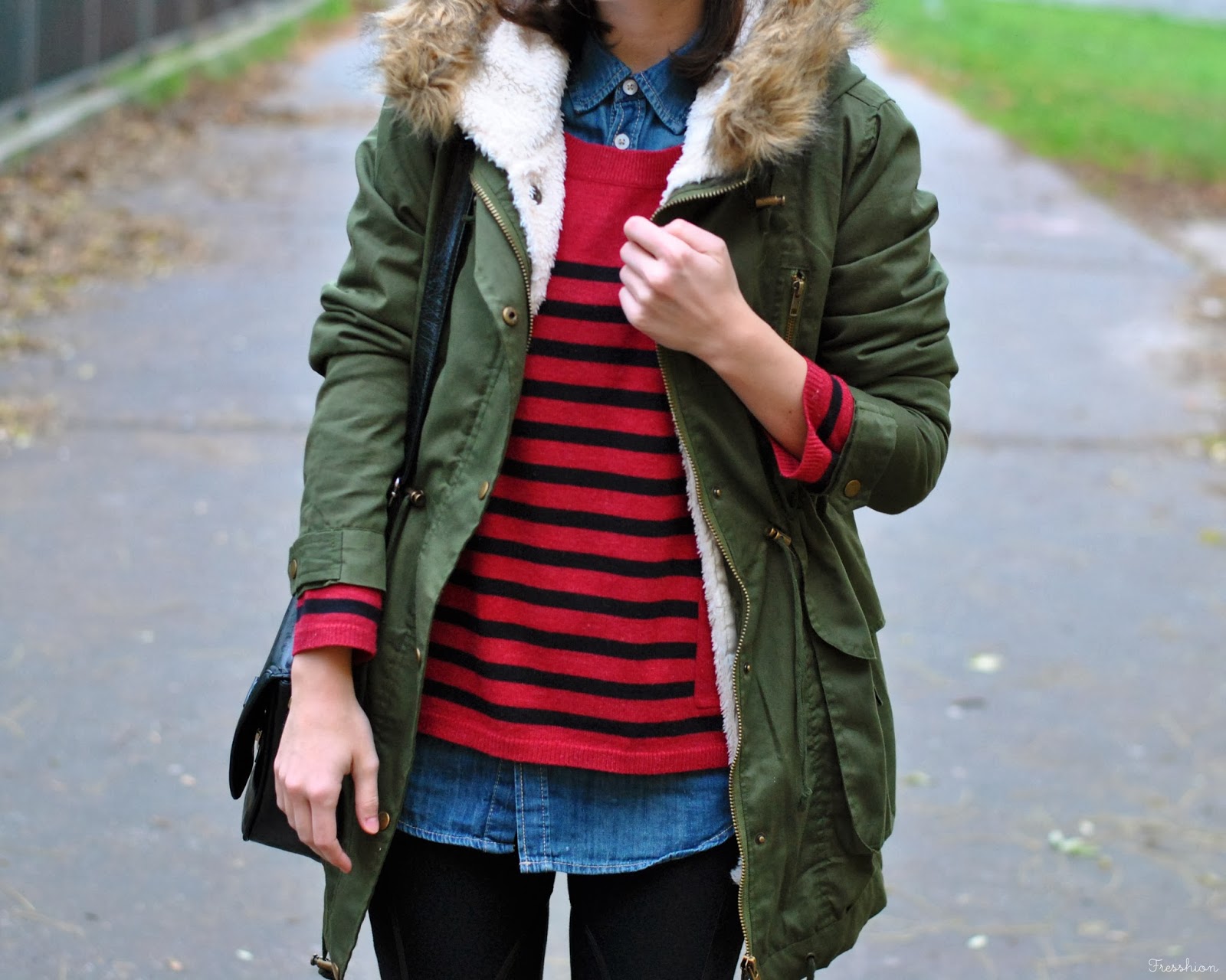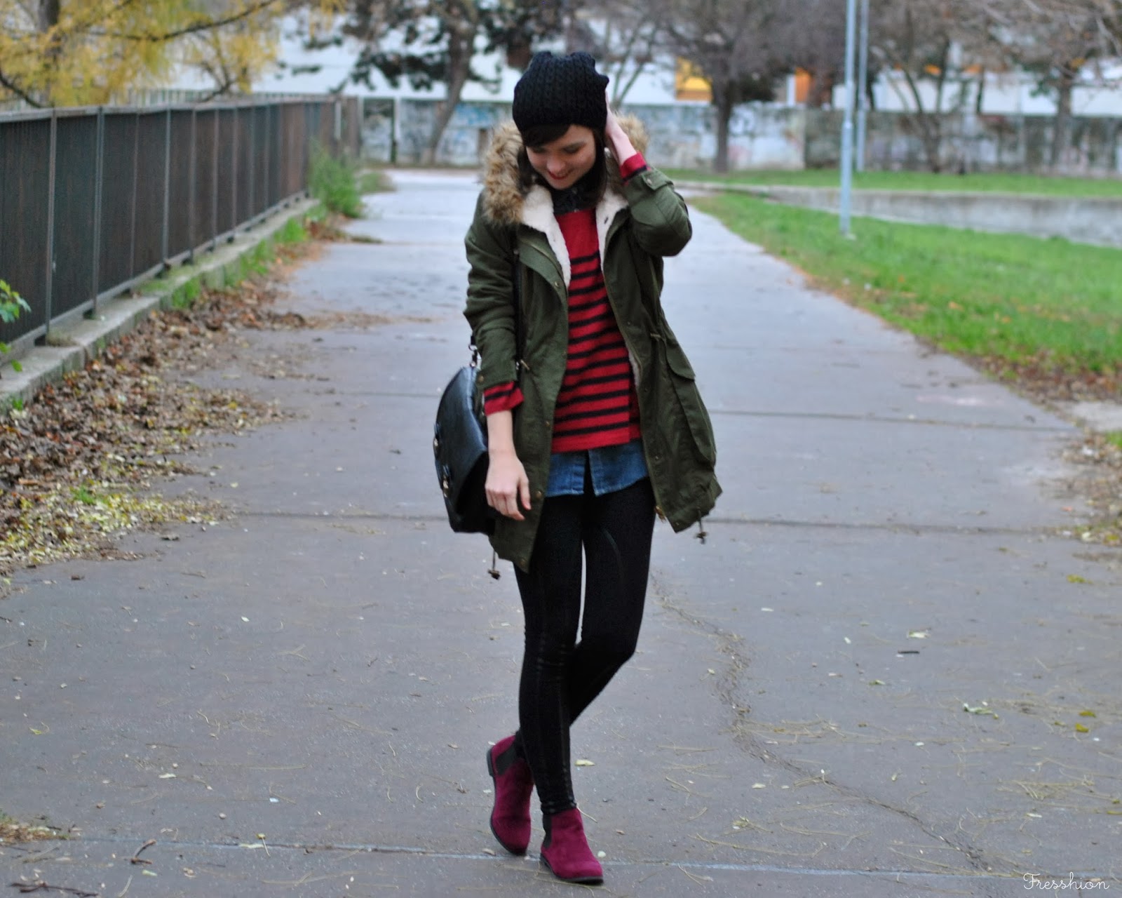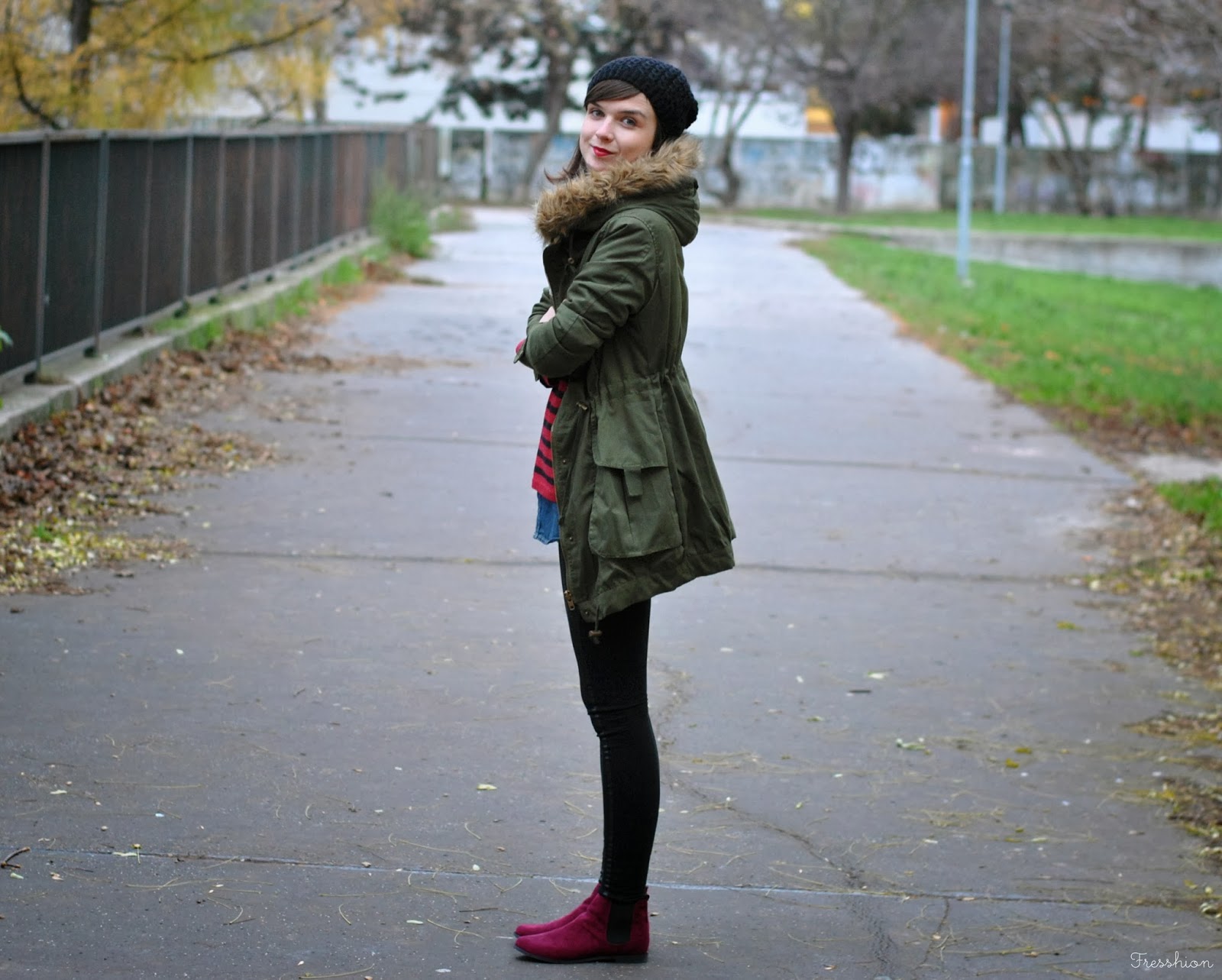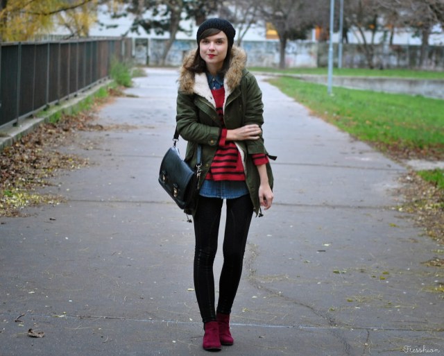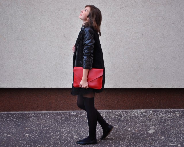 tento červený. Strih má v podstate podobný ako ten károvaný, len materiál mi príde trošku chlpatejší, tak sa bojím aby nepúšťal chlpy na všetko okolo čoho prejdem. A zase tá červená. Jeden červený kabát už mám (všetci si ho určite veľmi dobre pamätáte a ak náhodou aj nie, nebojte, za chvíľu príde jeho čas a bude sa tu vyskytovať až príliš často).
