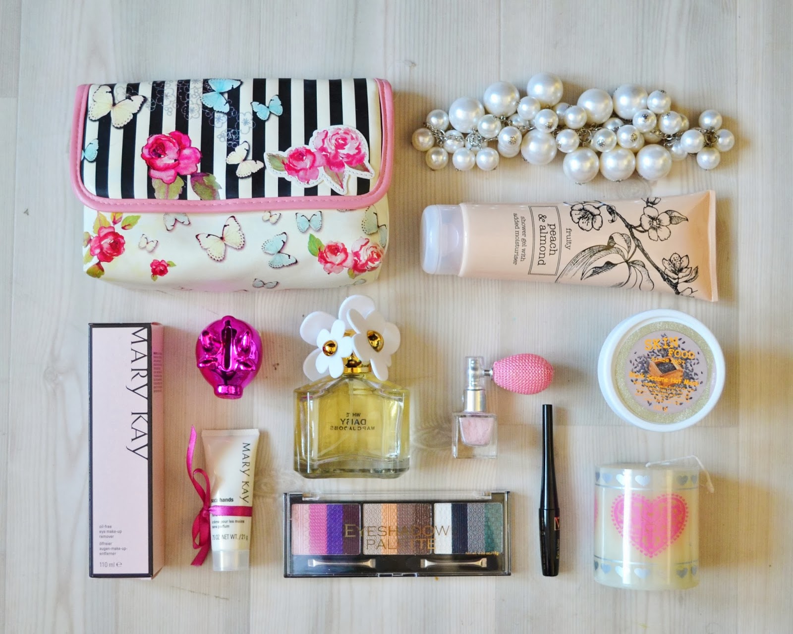 kuchárska show v telke (poznáte?pozeráte?páči sa Vám?). Ďalšími ´kuchynskými´ darčekmi boli okrem rozkošnej knihy o makrónkach (za ktorú ďakujem Ježiškovi Mirke!) srdiečkové hrnčeky (pre mňa a pre Neho), sada hviezdičkových misiek, bodkované košíčky na cupcakes (pretože tých nikdy nie je dosť), silikónová zdobička, láskyplné vykrajovačky na keksíky a ďalšie (tentokrát vianočné) hrnčeky. Vianoce by neboli Vianocami aj bez nejakých tých kozmetických darčekov, a tak som si tento rok našla pod stromčekom rozkošnú pruhovano-kvetovanú kozmetickú taštičku, najvoňavejšiu Daisy a broskyňový sprcháč, niečo od Mary Kay, skvelú