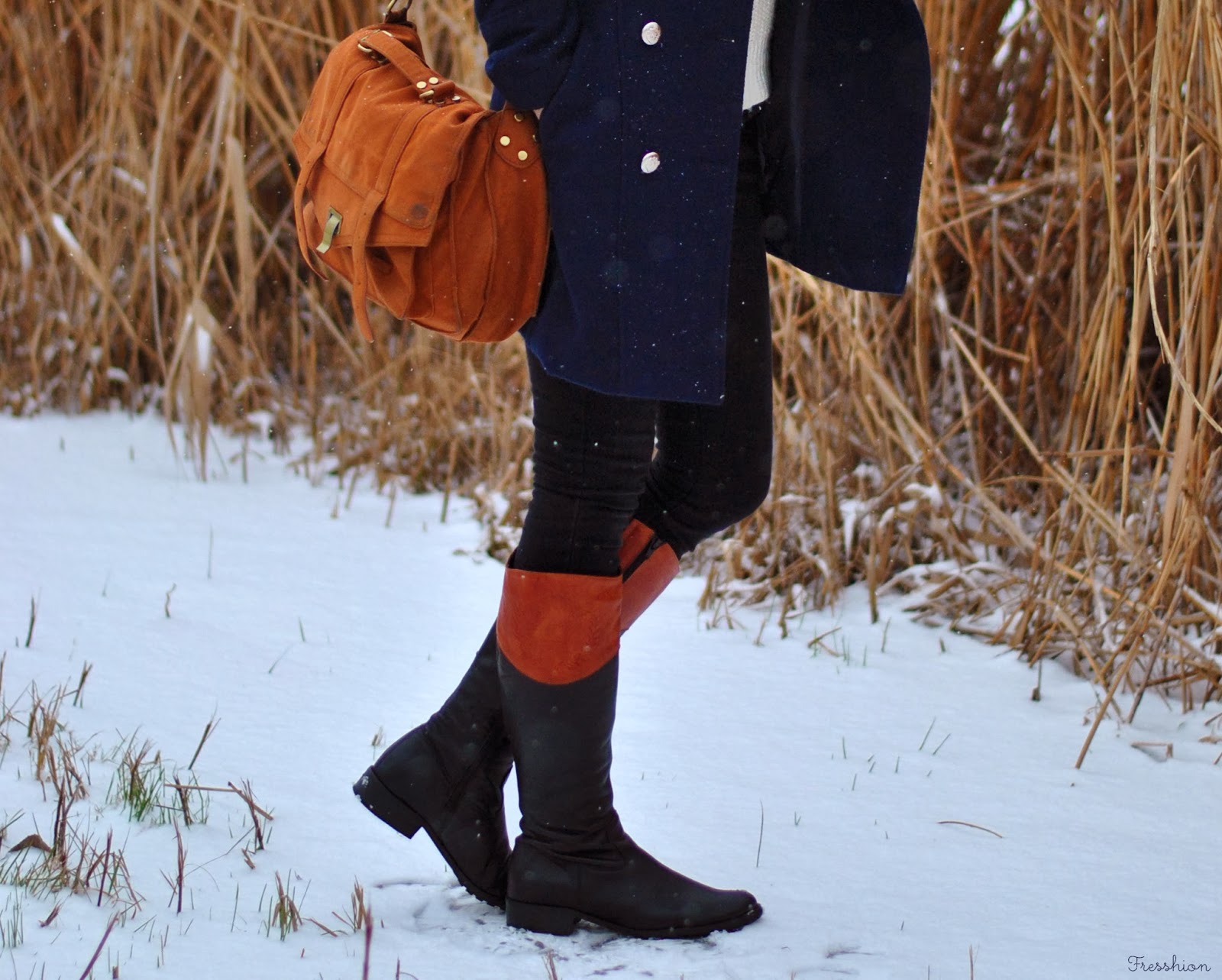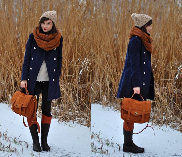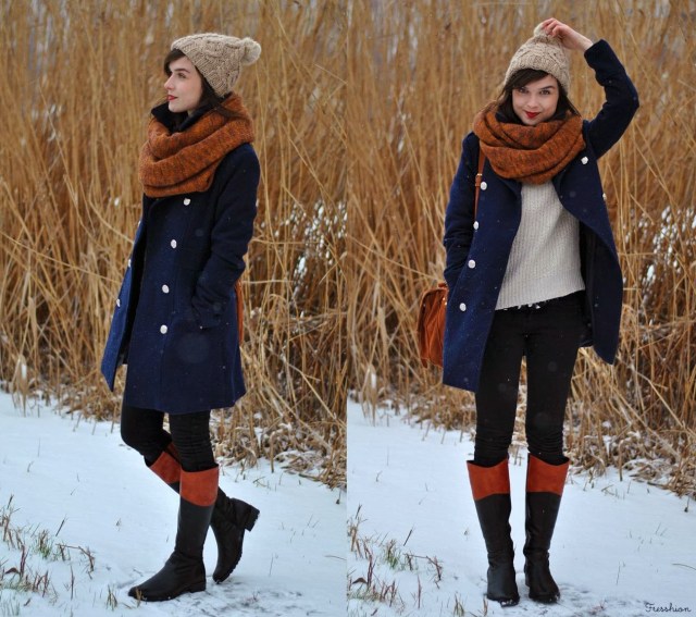 Prišla zima vážení! Ja som totiž vytiahla ten najhrubší vlnený sveter (ktorý už vôbec nehryzie, hip-hip-hurá!), najväčší a najteplejší šál aký mám (do ktorého by som sa celá trikrát zamotala, kebyže chcem…no dobre, tak raz určite), tieto (konečne poriadne!!) čižmy, v ktorých sa mi nešmýka a je mi v nich (aj vďaka ovečkovej vložke) príjemne teplučko a nakoniec čiapku s brmbolcom, o ktorej som si dlhé roky myslela, že mi nepristane. Celé som to doplnila už iba tmavomodrým kabátom, obľúbenou kabelkou, červeným rúžom a hor sa do tej kalamity!