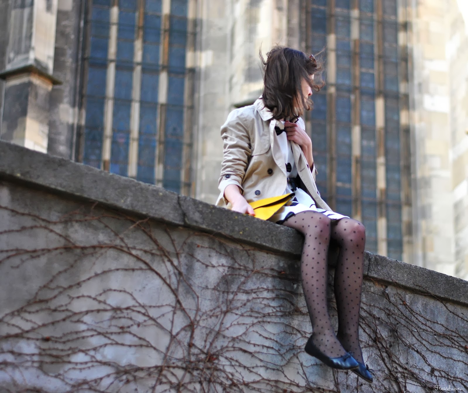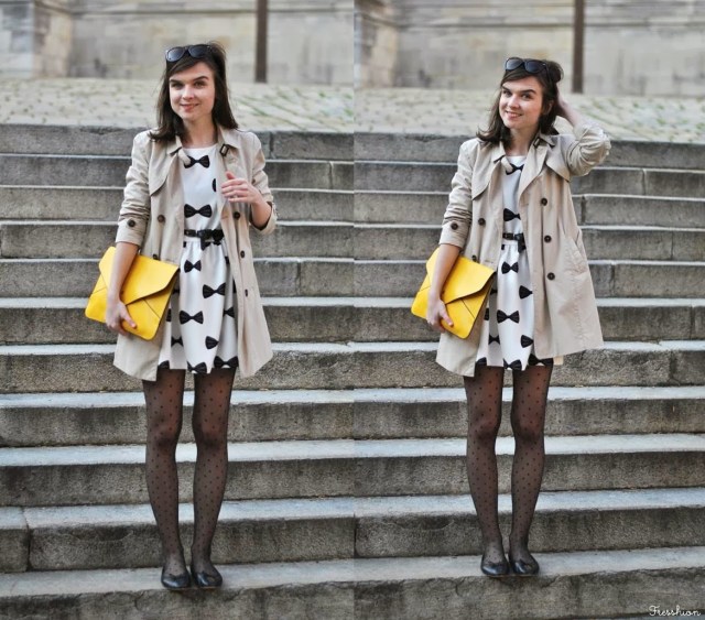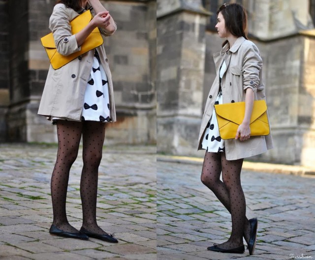 Tak a je to tu! V balerínkach, trenčkote a mašličkových šatách vítam jar. Tiež ju už cítite vo vzduchu? A nebojte, mala som aj sveter ;) Každopádne sa už neviem dočkať ako pomaly vytiahnem všetky svoje obľúbené jarné kúsky a budem ich kombinovať s tými novými. Napríklad s touto žltou kabelkou, ktorá skvele oživí každý nudný outfit. Bodkované silonky detto a o kombinácii oboch ani nehovorím. Baví ma! Čo na ňu hovoríte? A čo budete túto jar nosiť vy? Máte už vyhliadnuté nejaké must-have kúsky, ktoré akútne potrebujete? Prezraďte!