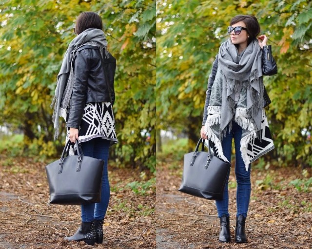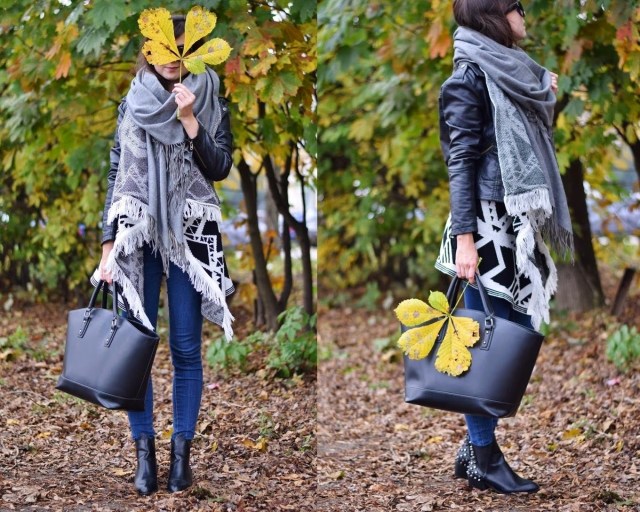 V čom prežívate toto počasie pod psa? Ja po uši zabalená v obrovskej deke obrovskom šále a hrubom svetri, ktorý dostal pracovný názov koberec. Keď si naňho dám koženú bundu, tak mi je príjemne a teplučko. Potom už stačí iba veľká kabelka, do ktorej vopchám školskú výbavu, notebook, desiatu a dokonca aj foťák a môžem ísť. V podstate je to dnes trošku variácia na tento outfit, no pravdu povediac mám v lenivé upršané dni podobné kombinácie zo všetkého najradšej. Hlavne nech som v suchu a teple. Máte to tiež tak?