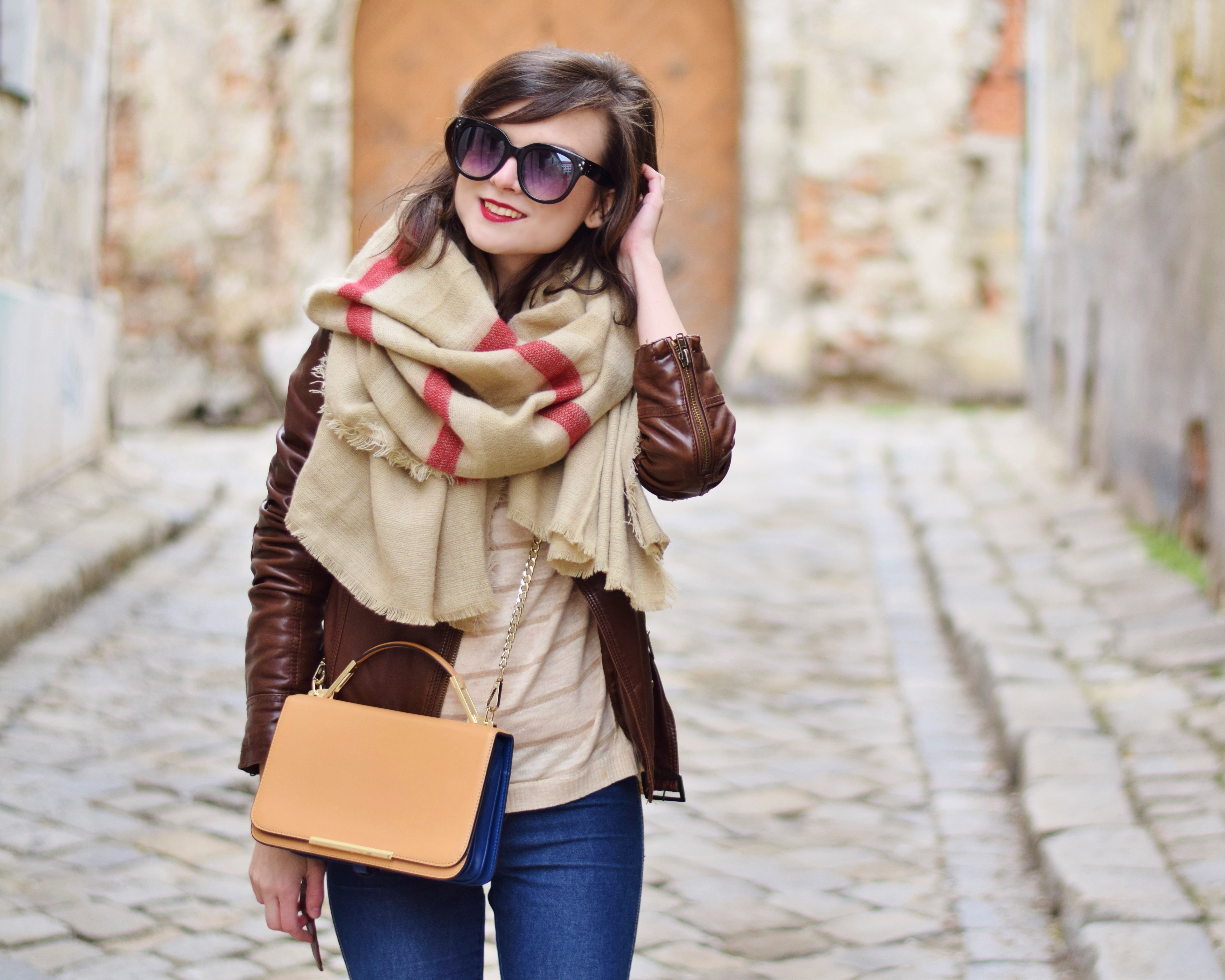 Ani neviem ako je možné, že som celý týždeň nič nenapísala. Teda vlastne viem. Stále som niekde behala a medzi tým ma nemal kto odfotiť. A ak aj náhodou mal, tak už bolo blbé svetlo. No nevadí. Dnes som zavelila, že už musíme niečo cvaknúť, a tak sme vytiahli bájsikle a počas prechádzky Starým mestom vznikli tieto zábery. Tie malebné uličky za Dómom s opadanými stenami a domčekmi s okenicami mám najradšej. A čo sa týka outfitu, tak ten je taký správne víkendový. Obľúbené džínsy, pohodlný sveter, hnedá bundička a nový obrí šál, ktorý je zo všetkých najpríjemnejší! K tomu už iba čižmičky, obľúbená kabelka a červený rúž (všímate to zladenie s pruhom na šále?). Ako víkendujete vy?