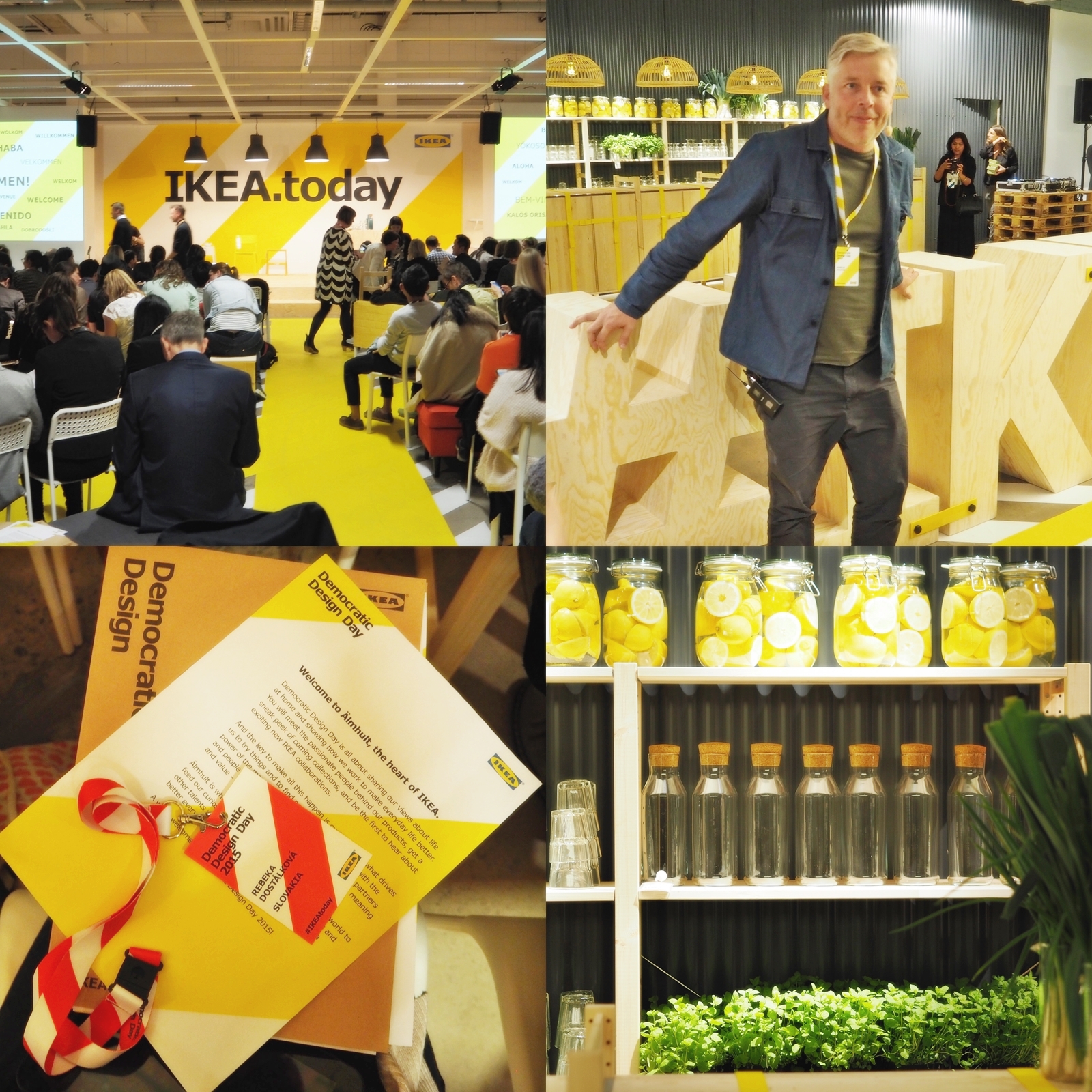 No a po obede už vypuklo TO, kvôli čomu sme vlastne prišli. Jednotlivé prezentácie o demokratickom dizajne. Celé sa to konalo v pôvodnom sklade obchodného domu, ktorý bol krásne nachystaný a vyzdobený. Všade boli debničky so zeleninou, lehátka, drevený bar, žlto-biele prúžky a obrovský hešteg #ikeatoday. Najskôr mal slovo Jesper Brodin, ktorý nám predstavil vybrané produkty z budúcich kolekcií, po ňom prišiel na scénu hlavný dizajnér Marcus Engman (to je ten na fotke vyššie, ktorý navrhol napríklad aj známu púpavovú lampu a musím povedať, že je to veľký sympaťák&vtipálek), ktorý nám priblížil 5 vecí, o ktoré sa Ikea momentálne snaží. Ako ďalší prezentoval šéf Ikea Food Michael La Cour. Keďže téma tohto ročníka DDD znela ´It starts with the food´, hovoril o tom ako sa aj v oblasti jedla snaží Ikea o udržateľnosť a kvalitu so zachovaním dostupnej ceny.