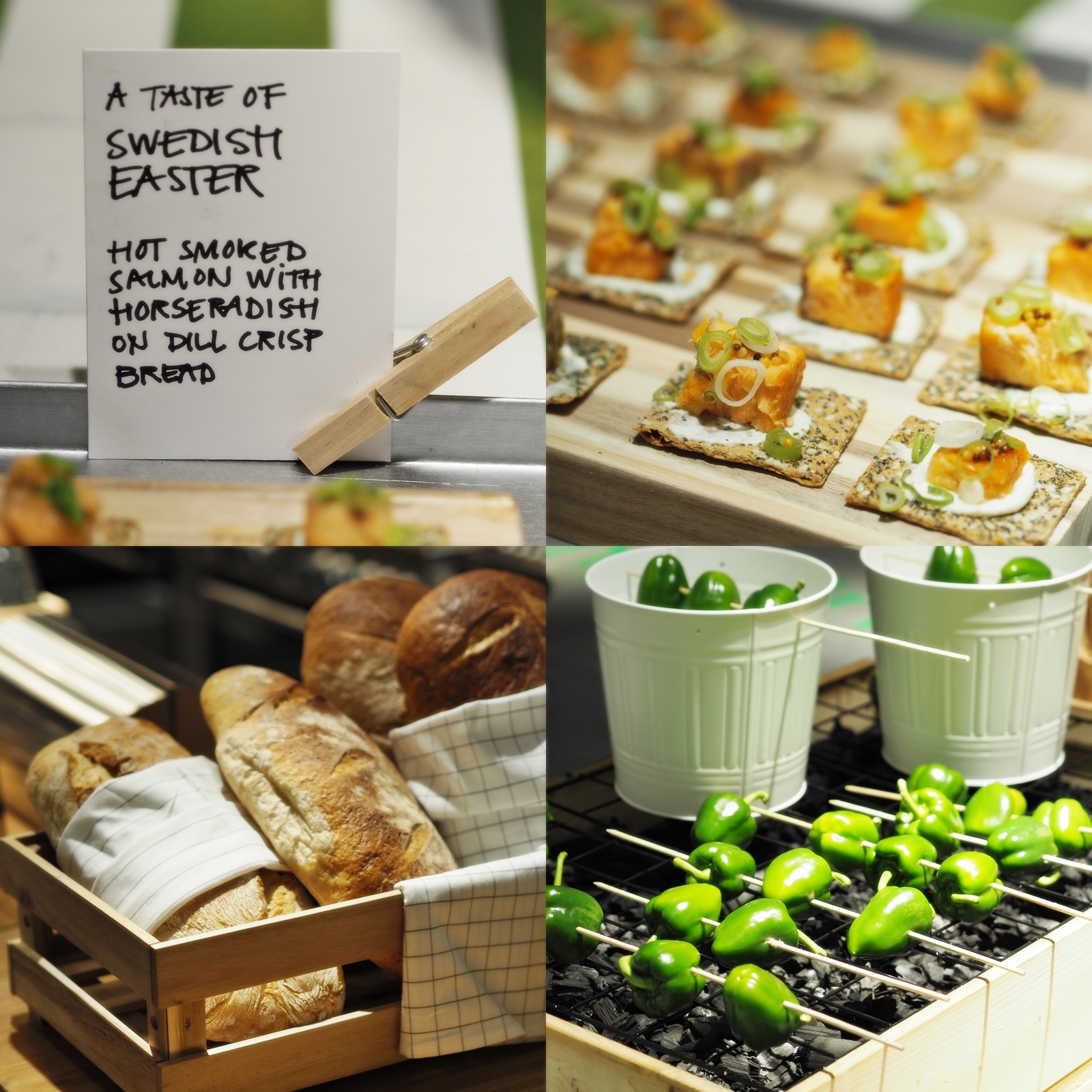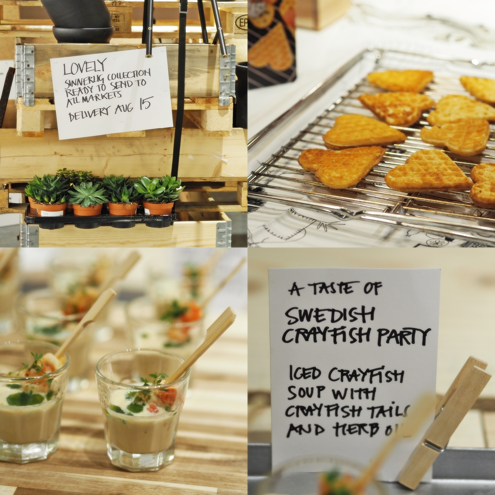 Po večeri sme sa vybrali minglovať ďalej a preskúmať výstavu, ktorú pre nás nachystali. Boli tam tematicky naaranžované všetky najnovšie kolekcie týkajúce sa prípravy jedla a stolovania aj s tým jedlom! (tie wafle! ten losos! a tá pena z bielej čokolády pripravená na pare s rebarborou a pusinkami!). No a neskôr sme sa až do odchodu posledného vlaku spoznávali s ostatnými novinármi a blogermi a obdivovali extrémne štýlovú švédsku DJ-ku.