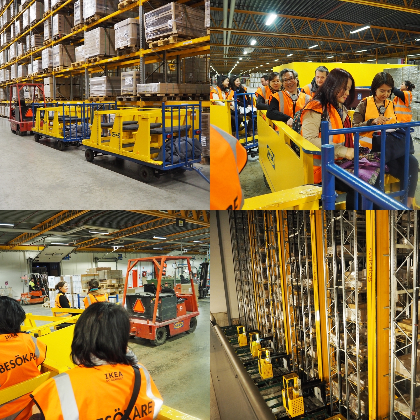 Predposlednou Ikea zastávkou pre nás bolo DC, čiže distribučné centrum. Miesto odkiaľ putujú všetky výrobky do obchodov v celom Švédsku. Dostali sme reflexné vesty (Ikea vesty) , viezli sa smiešnym vláčikom (Ikea vláčikom), videli stovky vysokozdvižných vozíkov a aj robotický sci-fi sklad.