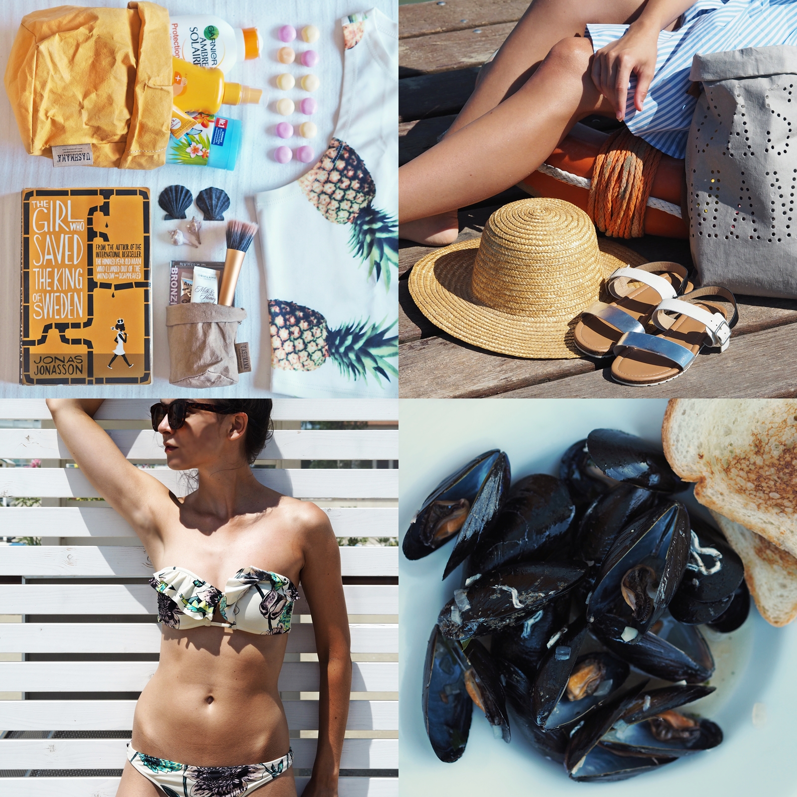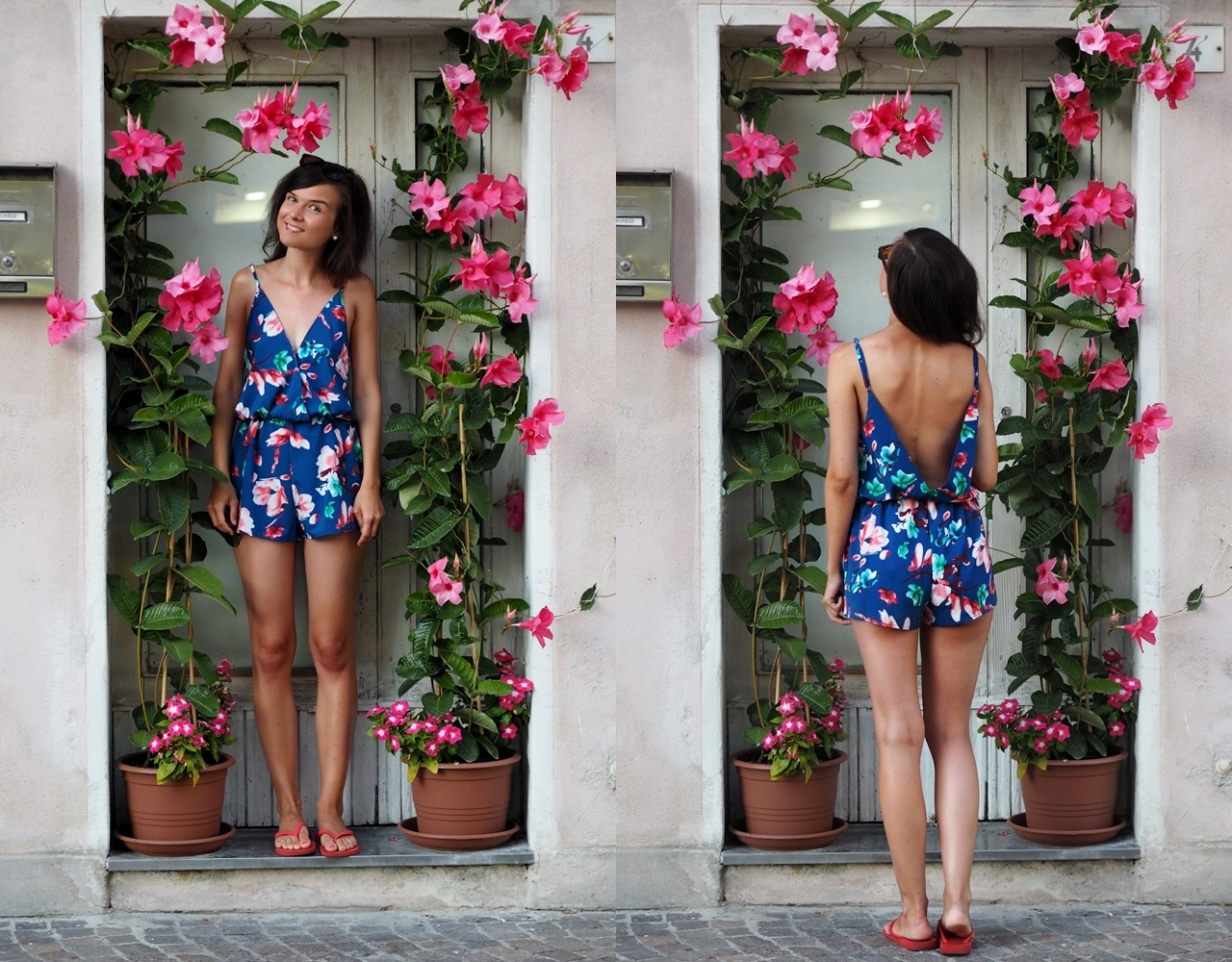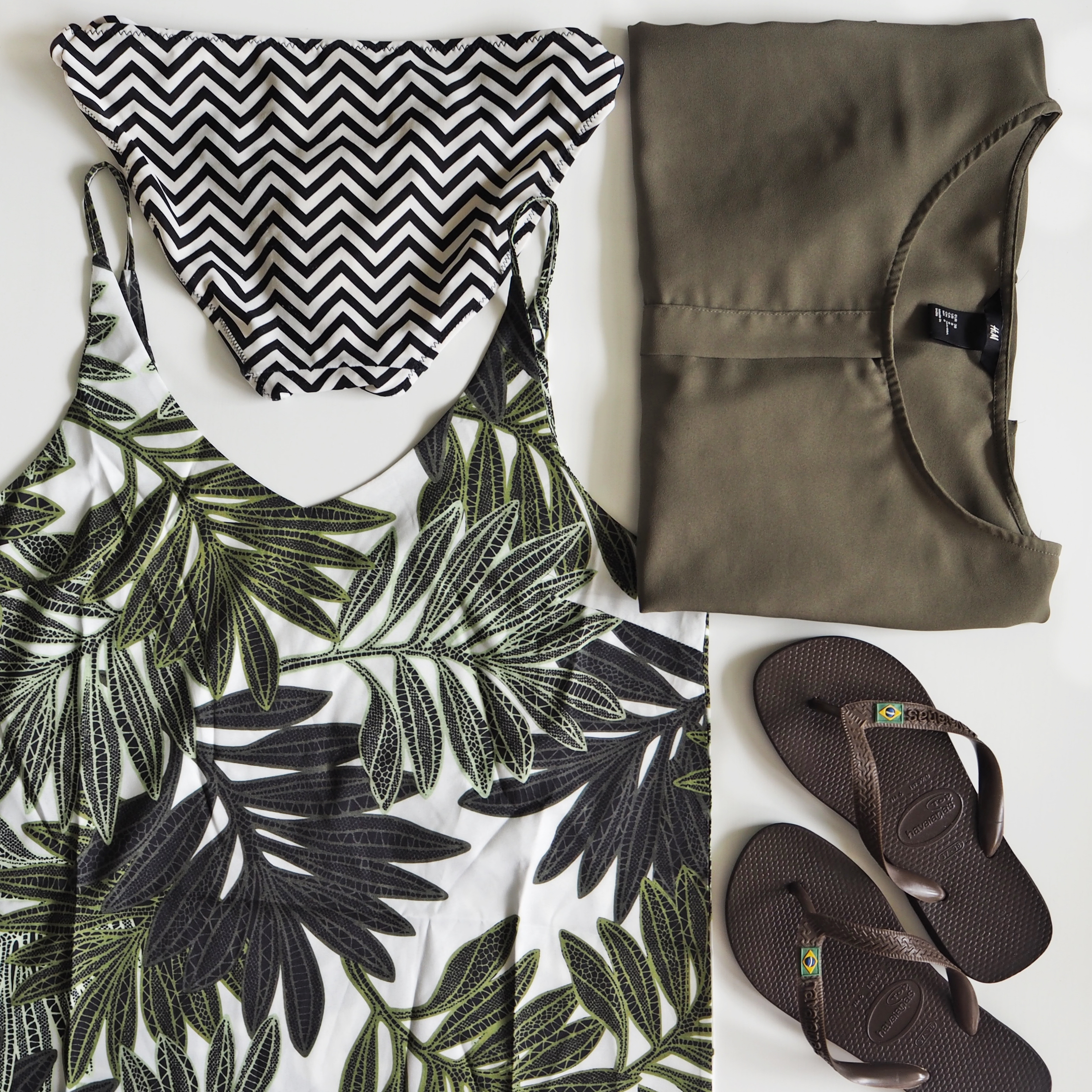 bikini bottom-H&M / leaf print dress–Shein / Havaianas flip flops, H&M top – second-hand
