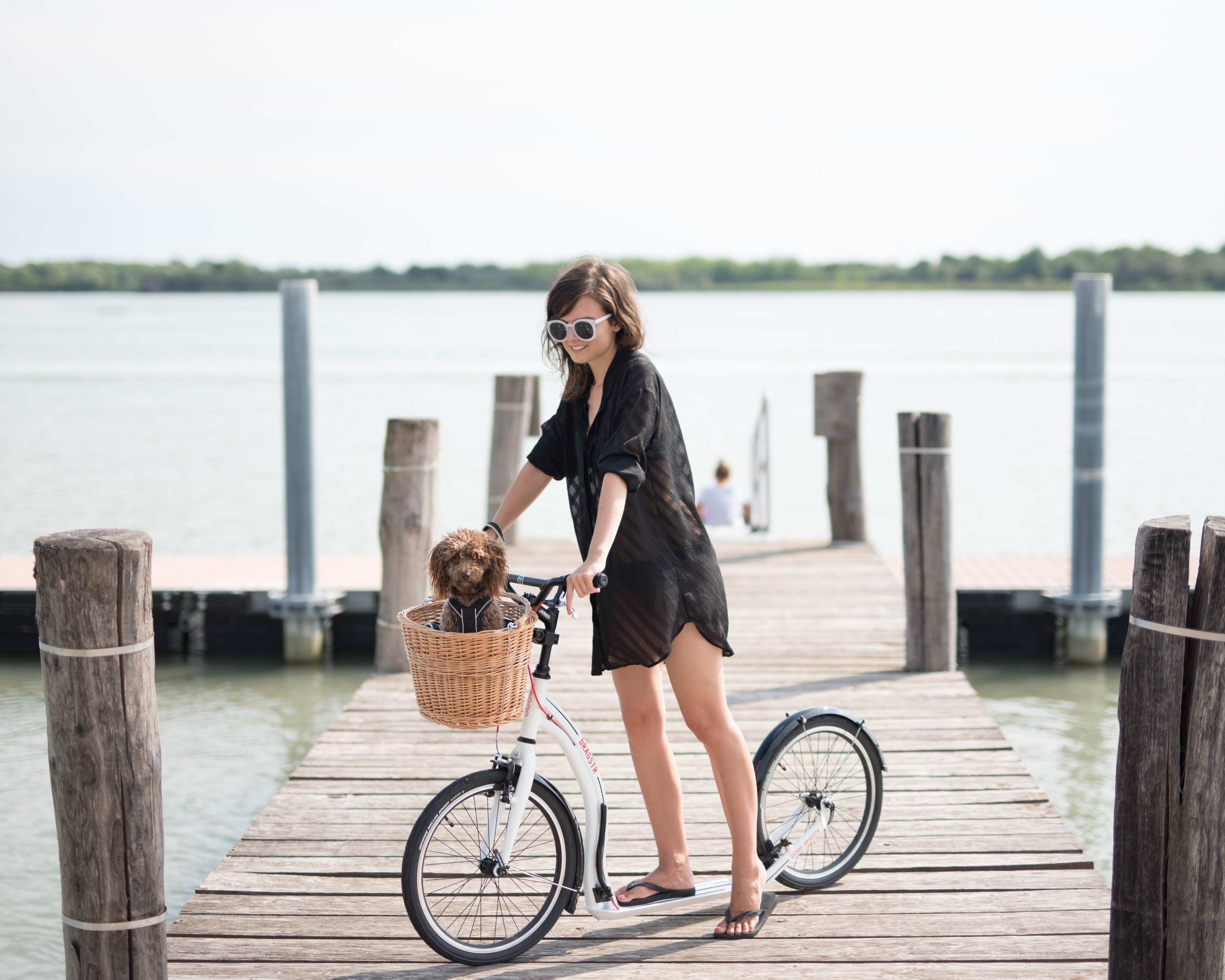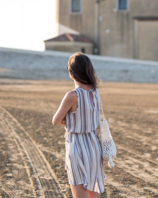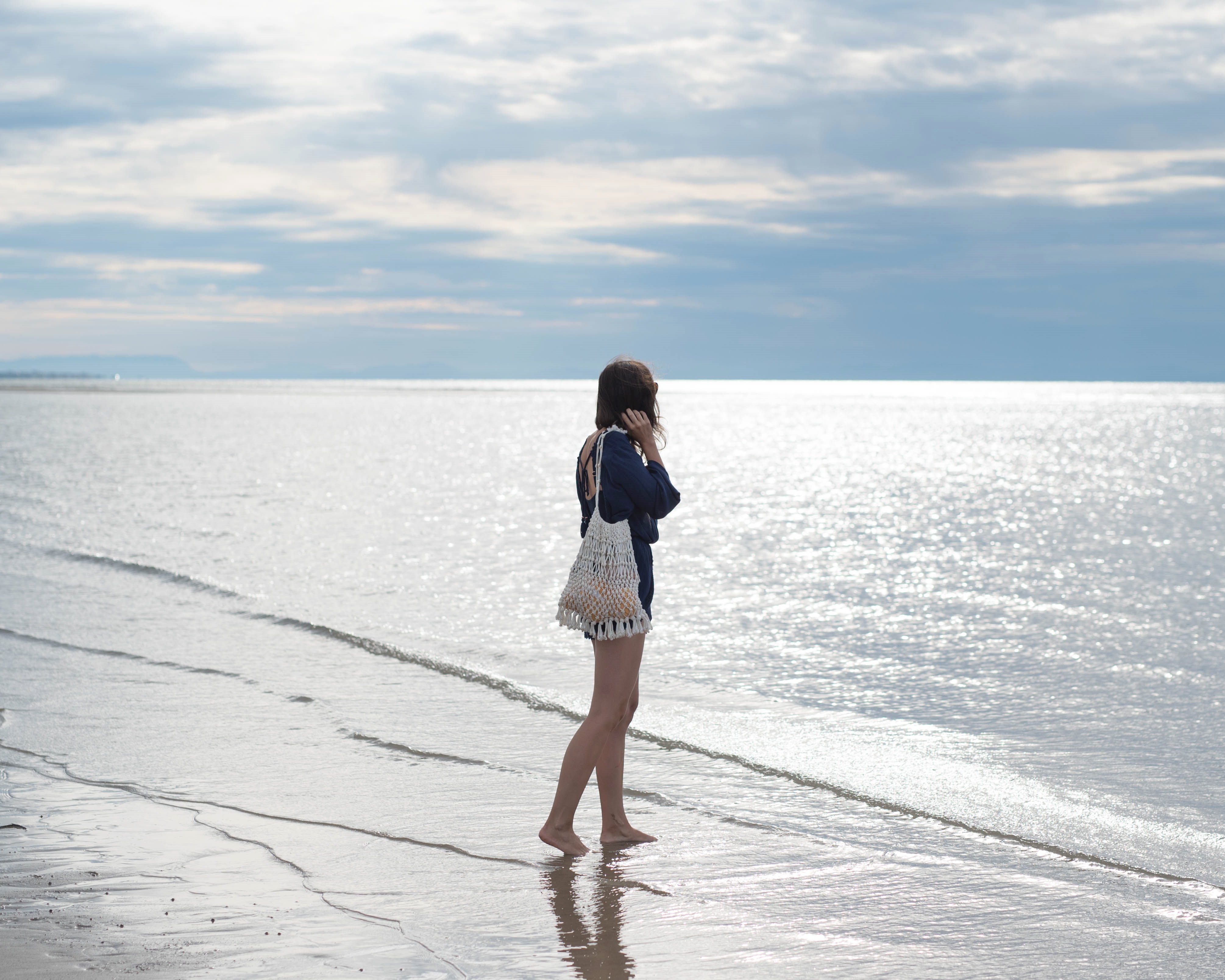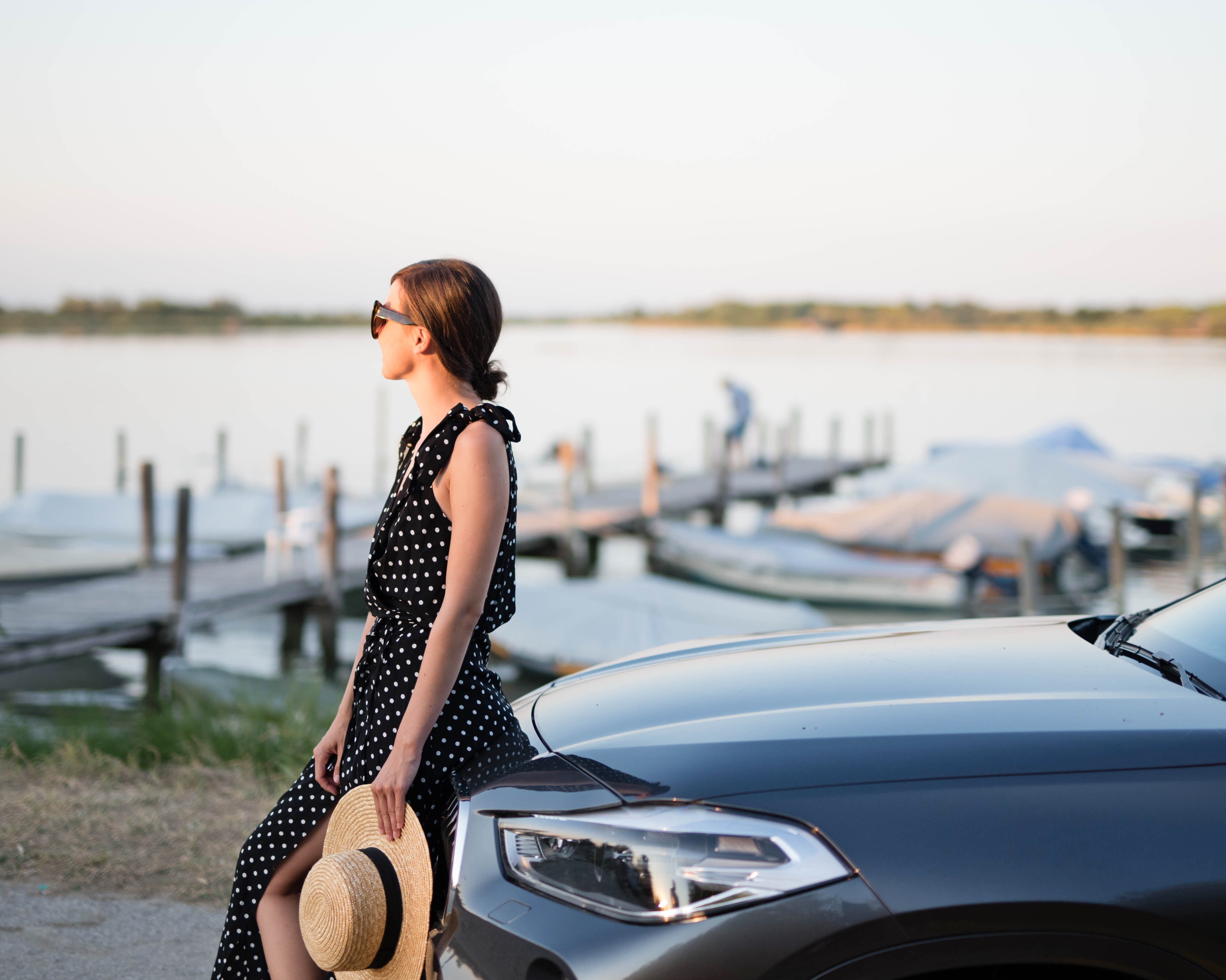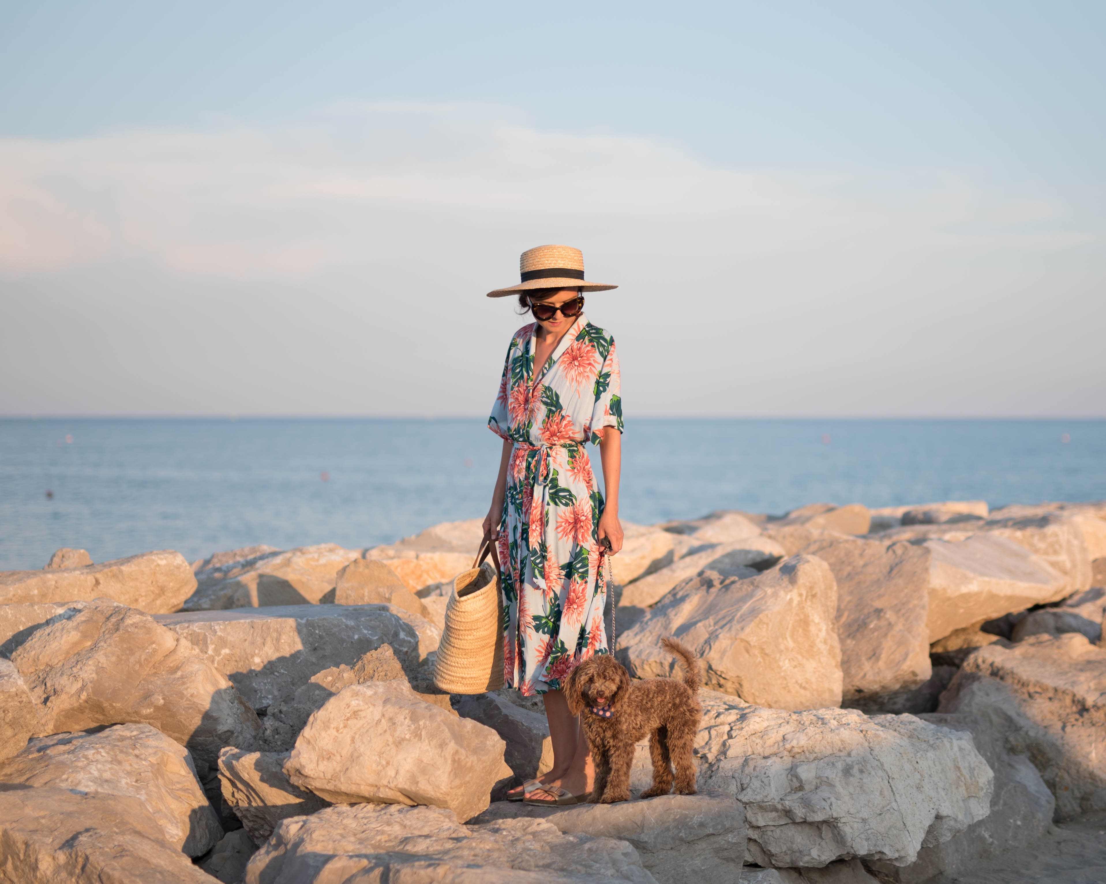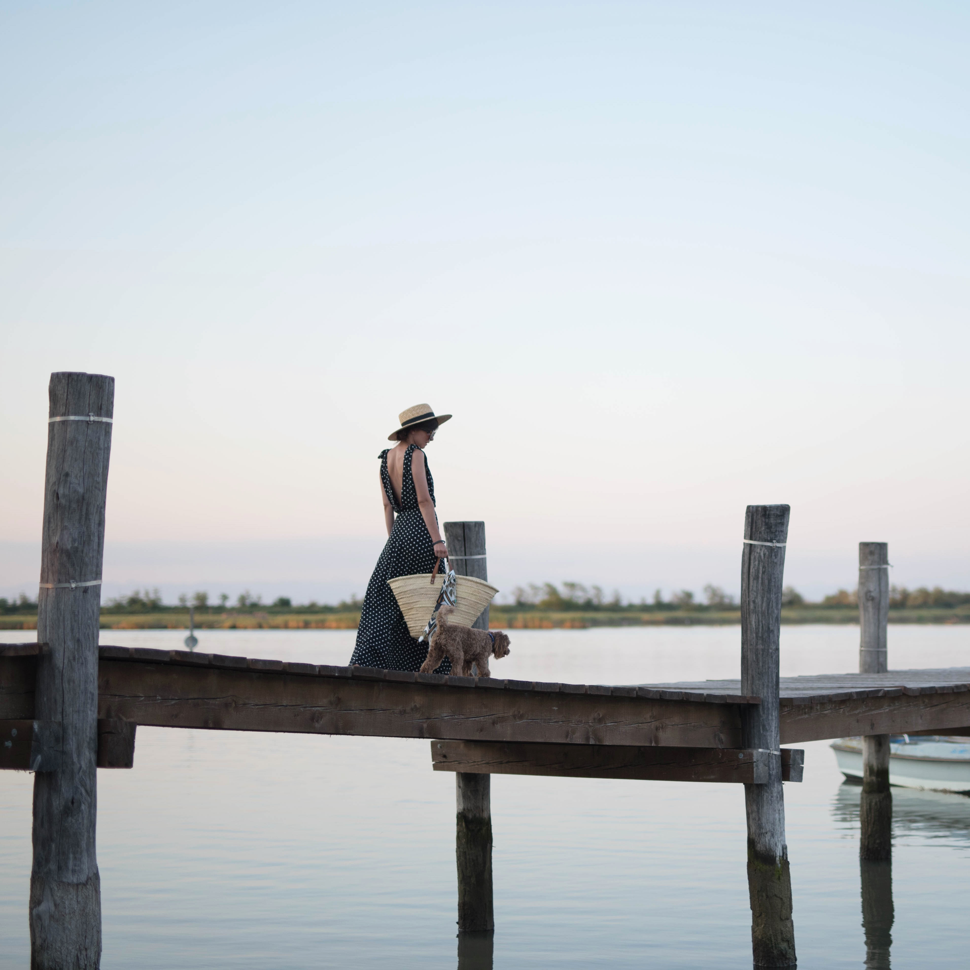 bodkovaná blúzka, malý slamený košík – Bonprix / džínsy – H&M / topánky – Birkenstock z Office shoes